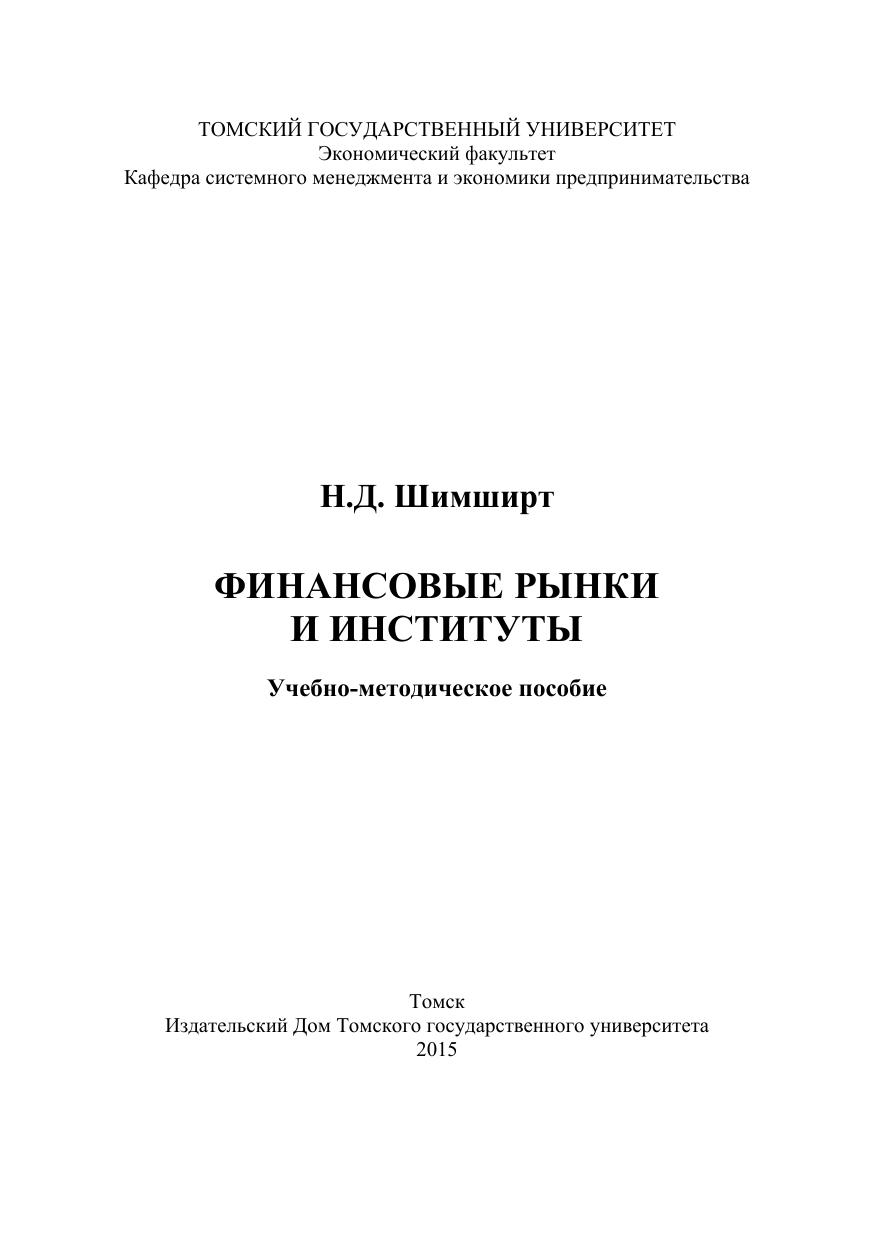 Финансовые рынки и институт