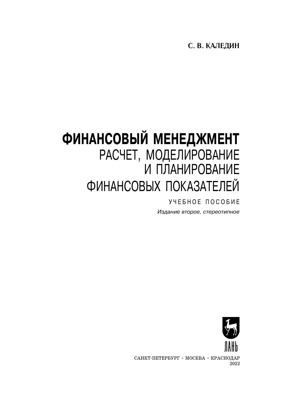Финансовый менеджмент. Расчет, моделирование и планирование финансовых показателей