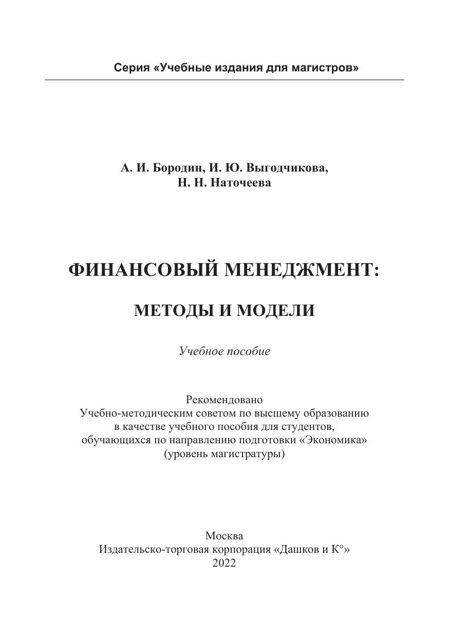 Предлагаемое учебное пособие предоставляет читателю возможность ознакомиться с методами финансового менеджмента, позволяющими получить верное (оптимальное) решение на основе принципиальной аналитической модели.