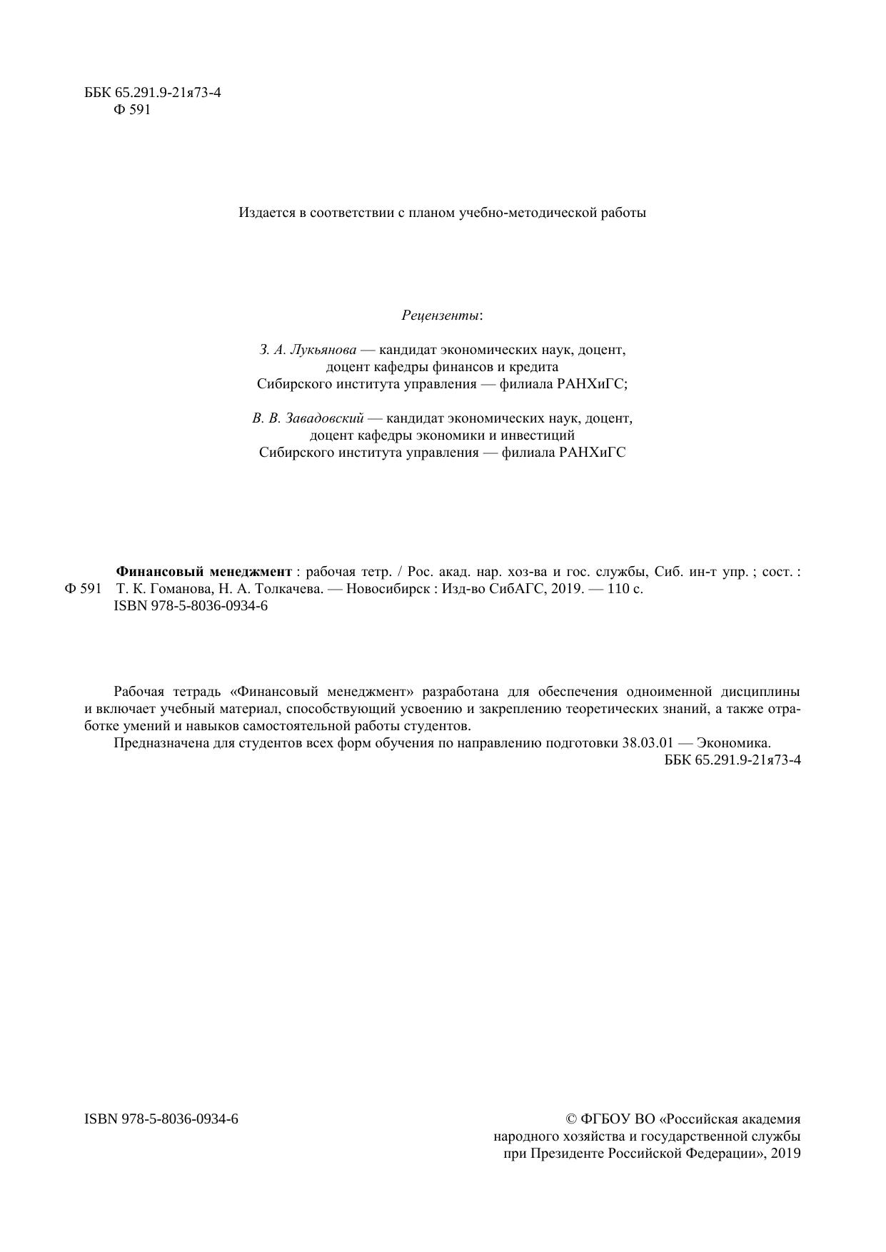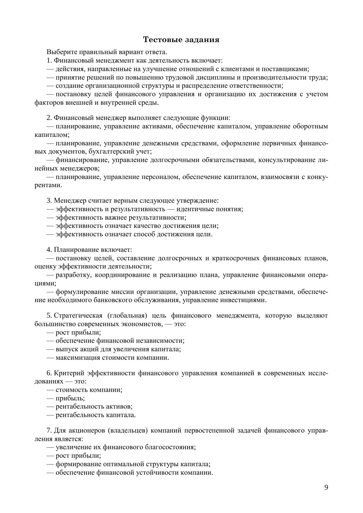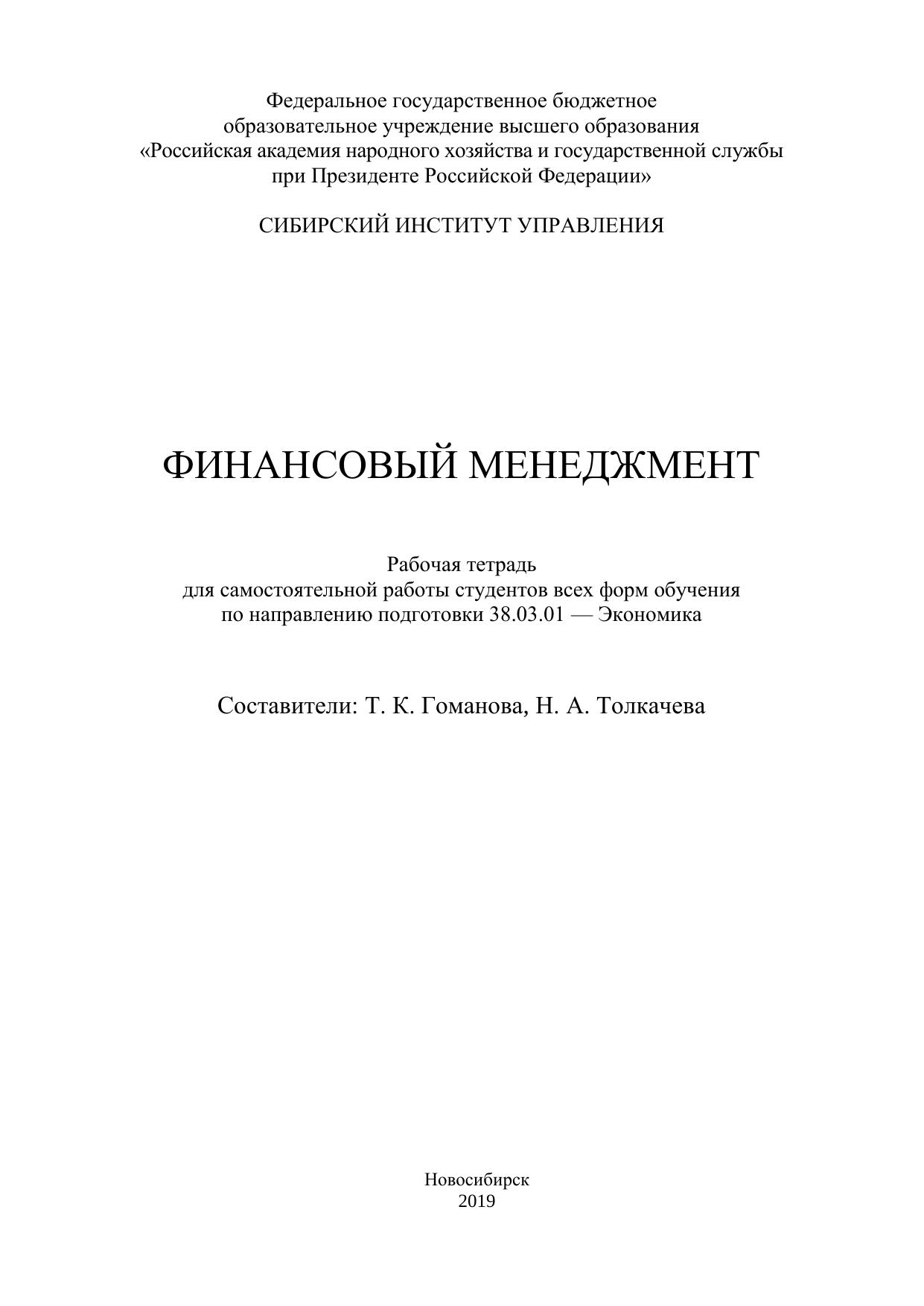 Финансовый менеджмент: рабочая тетрадь