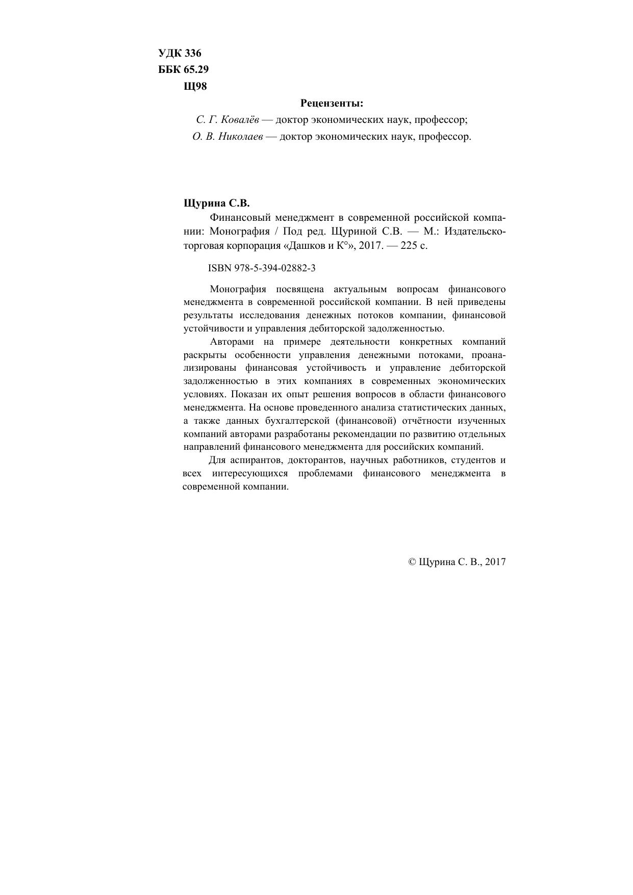 Монография посвящена актуальным вопросам финансового менеджмента в современной российской компании. В ней приведены результаты исследования денежных потоков компании, финансовой устойчивости и управления дебиторской задолженностью. Авторами на примере деятельности конкретных компаний раскрыты особенности управления денежными потоками, проанализированы финансовая устойчивость и управление дебиторской задолженностью в этих компаниях в современных экономических условиях. Показан их опыт решения вопросов в области финансового менеджмента. На основе проведенного анализа статистических данных, а также данных бухгалтерской (финансовой) отчётности изученных компаний авторами разработаны рекомендации по развитию отдельных направлений финансового менеджмента для российских компаний. Для аспирантов, докторантов, научных работников, студентов и всех интересующихся проблемами финансового менеджмента в современной компании.