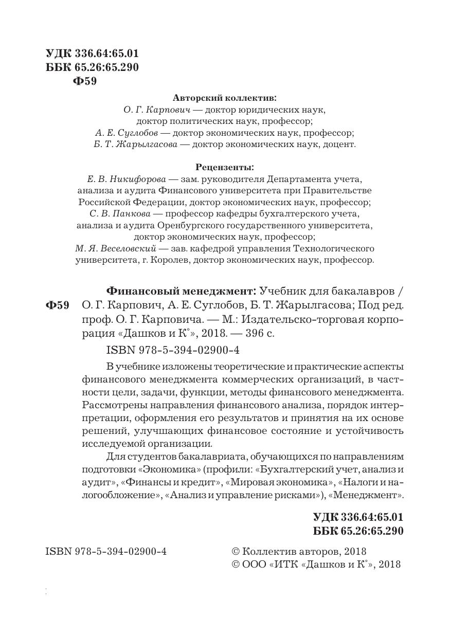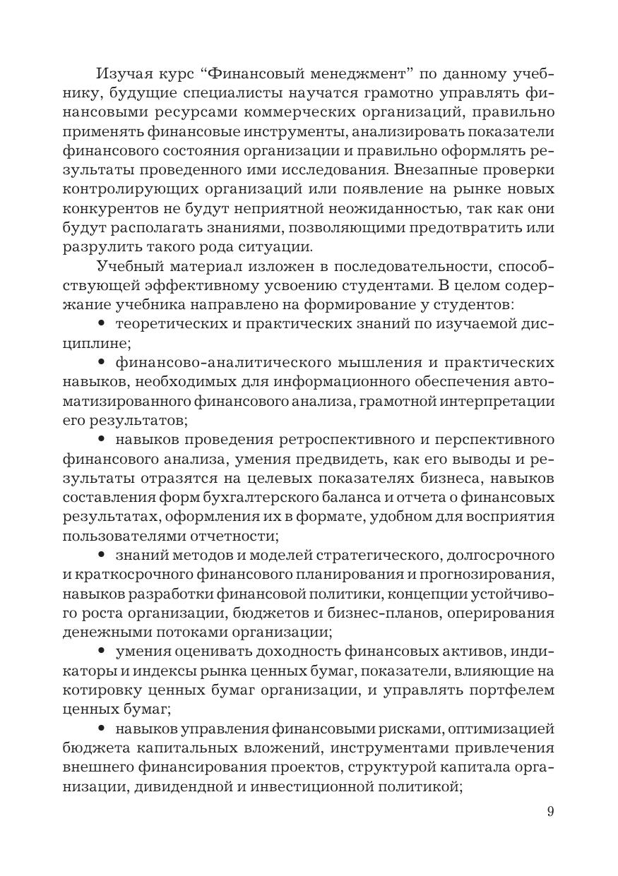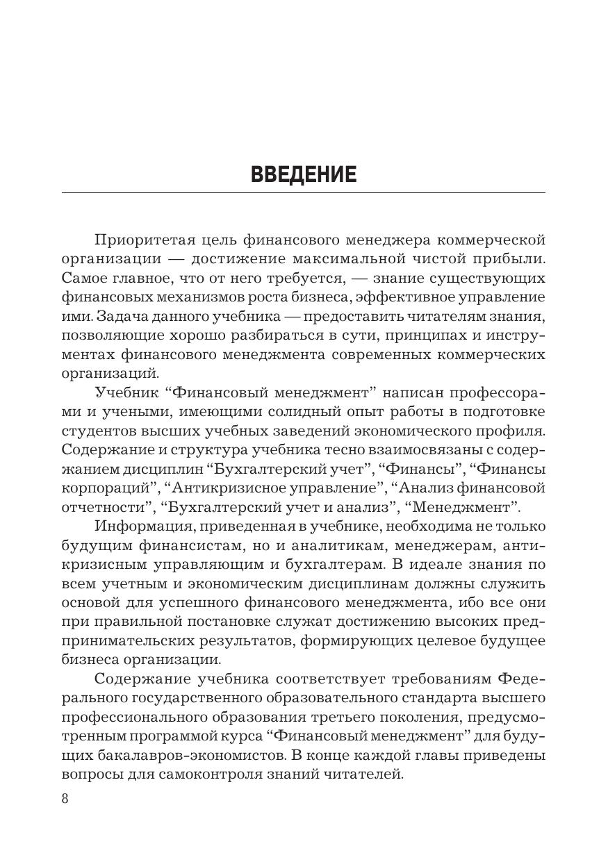 В учебнике изложены теоретические и практические аспекты финансового менеджмента коммерческих организаций, в частности цели, задачи, функции, методы финансового менеджмента. Рассмотрены направления финансового анализа, порядок интерпретации, оформления его результатов и принятия на их основе решений, улучшающих финансовое состояние и устойчивость исследуемой организации. Для студентов бакалавриата, обучающихся по направлениям подготовки «Экономика» (профили: «Бухгалтерский учет, анализ и аудит», «Финансы и кредит», «Мировая экономика», «Налоги и налогообложение», «Анализ и управление рисками»), «Менеджмент».