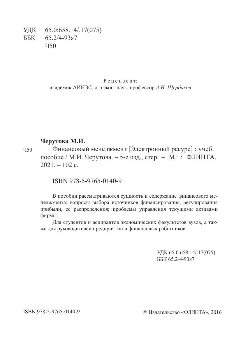 В пособии рассматриваются сущность и содержание финансового менеджмента; вопросы выбора источников финансирования, регулирования прибыли, ее распределения; проблемы управления текущими активами фирмы.