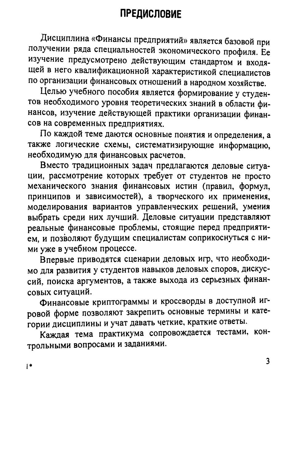 Подготовлено в соответствии с типовой программой учебного курса "Финансы предприятий". Каждая тема раскрывается комплексно: основные понятия и определения, схемы с описанием механизмов реализации финансовых процессов, деловые ситуации, деловые игры, криптограммы, финансовые кроссворды, тесты, контрольные вопросы и задания. Содержание деловых ситуаций, игр, тестов максимально приближено к реальным условиям работы предприятий (организаций) сферы материального производства. В конце книги имеются ответы. Для студентов вузов и ССУЗов экономического профиля, других учебных заведений, изучающих финансовые дисциплины, а также для практических работников, занимающихся организацией финансов предприятий.