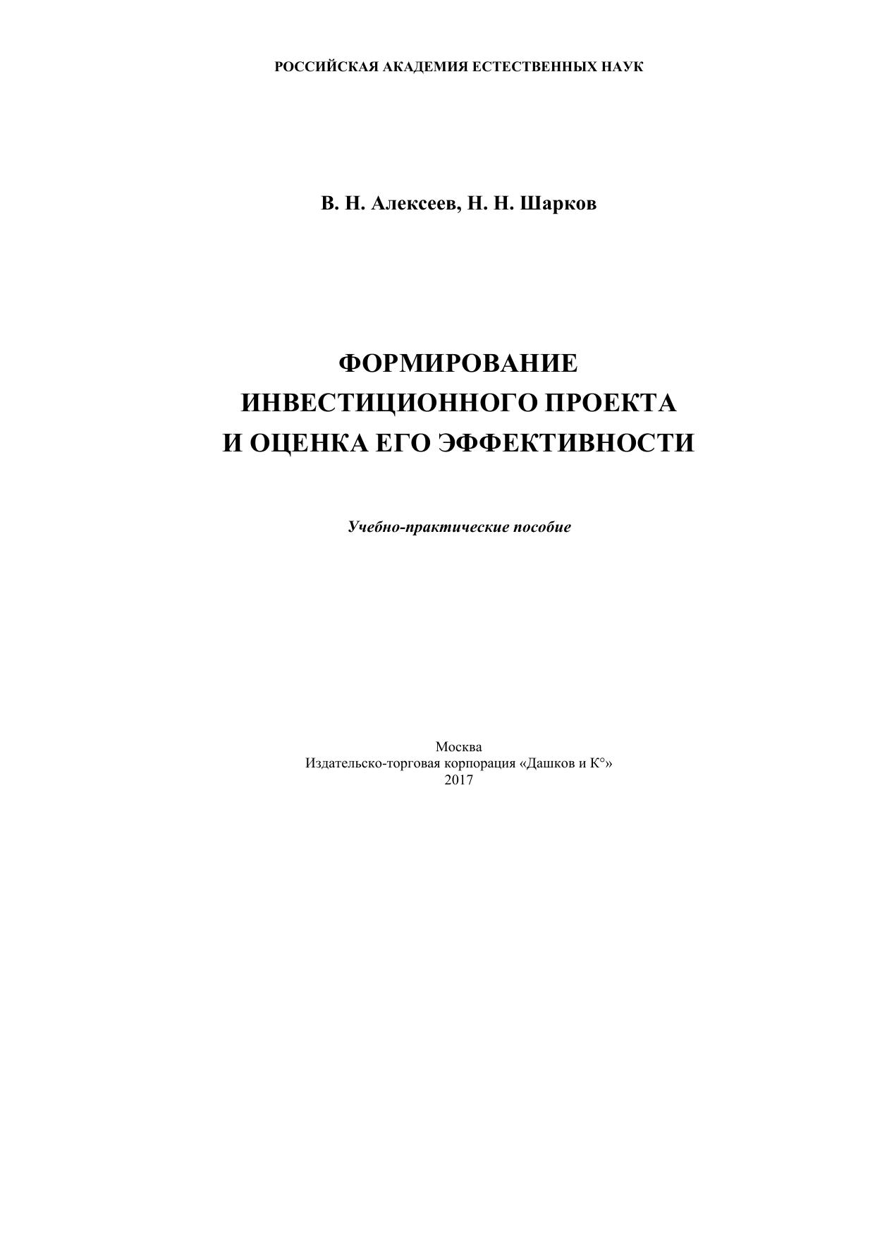Формирование инвестиционного проекта и оценка его эффективности: Учебно-практическое пособие