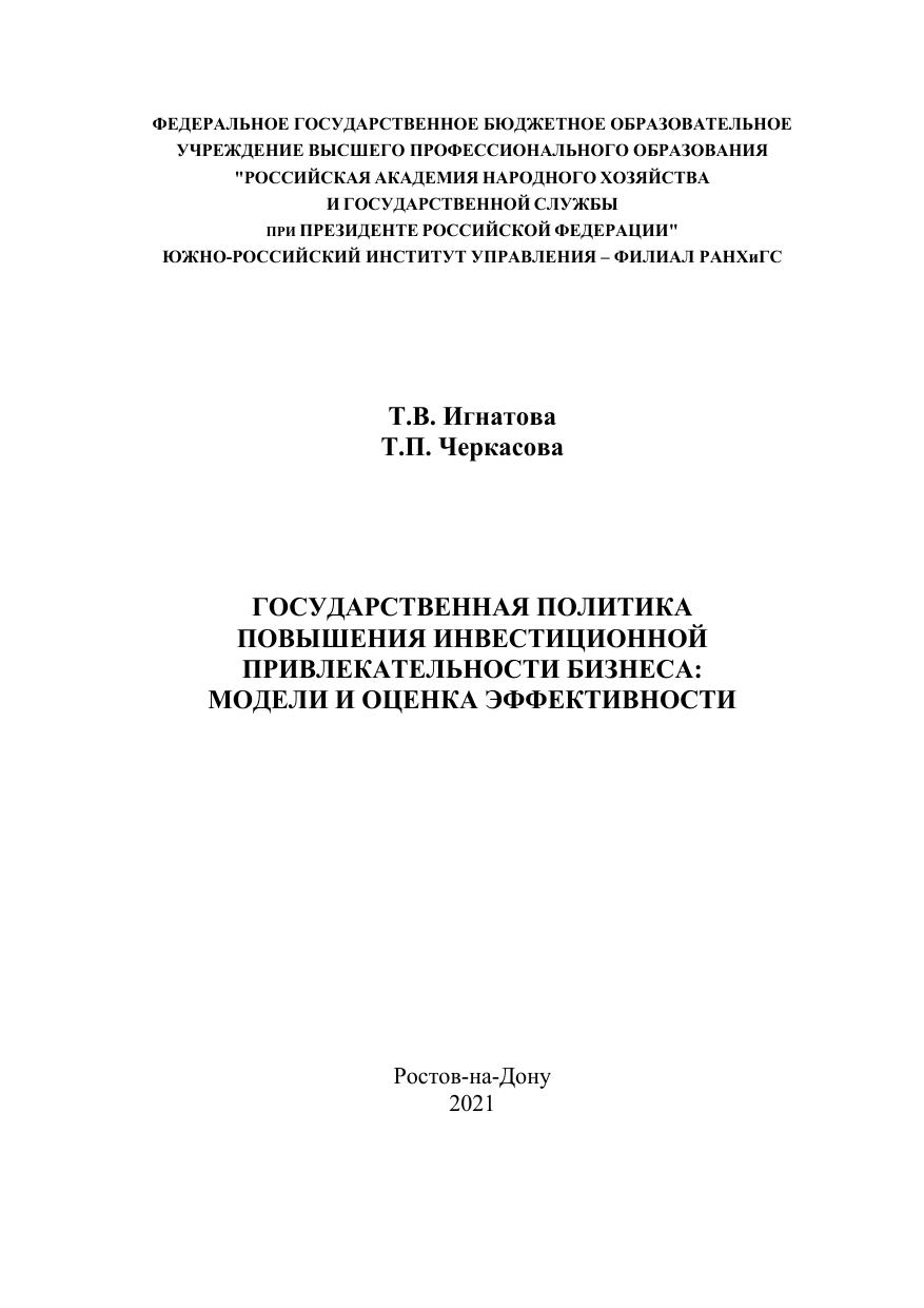 Государственная политика повышения инвестиционной привлекательности бизнеса: модели и оценка эффективности