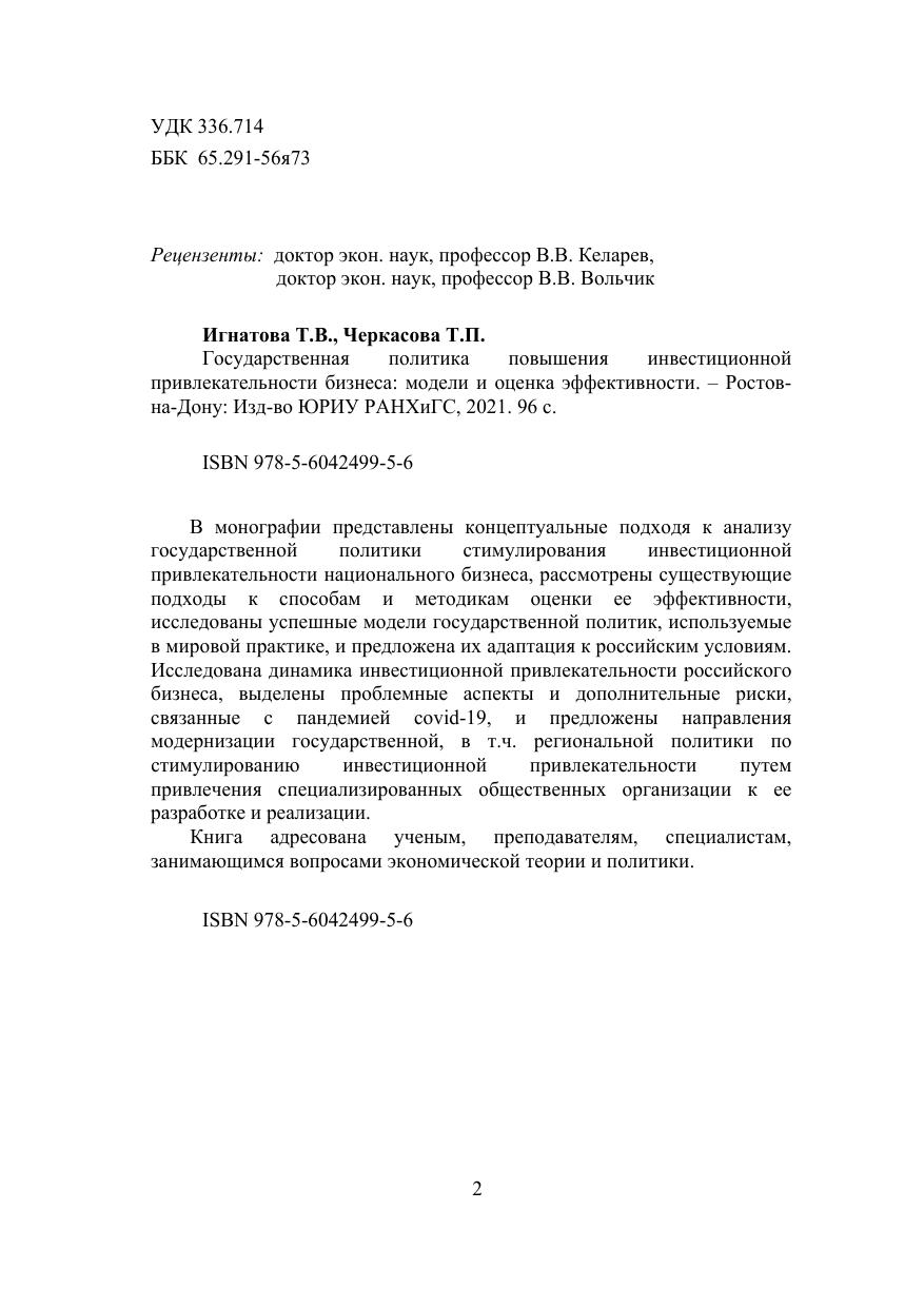 В монографии представлены концептуальные подходя к анализу государственной политики стимулирования инвестиционной привлекательности национального бизнеса, рассмотрены существующие подходы к способам и методикам оценки ее эффективности, исследованы успешные модели государственной политик, используемые в мировой практике, и предложена их адаптация к российским условиям. Исследована динамика инвестиционной привлекательности российского бизнеса, выделены проблемные аспекты и дополнительные риски, связанные с пандемией covid-19, и предложены направления модернизации государственной, в т.ч. региональной политики по стимулированию инвестиционной привлекательности путем привлечения специализированных общественных организации к ее разработке и реализации. Книга адресована ученым, преподавателям, специалистам, занимающимся вопросами экономической теории и политики.