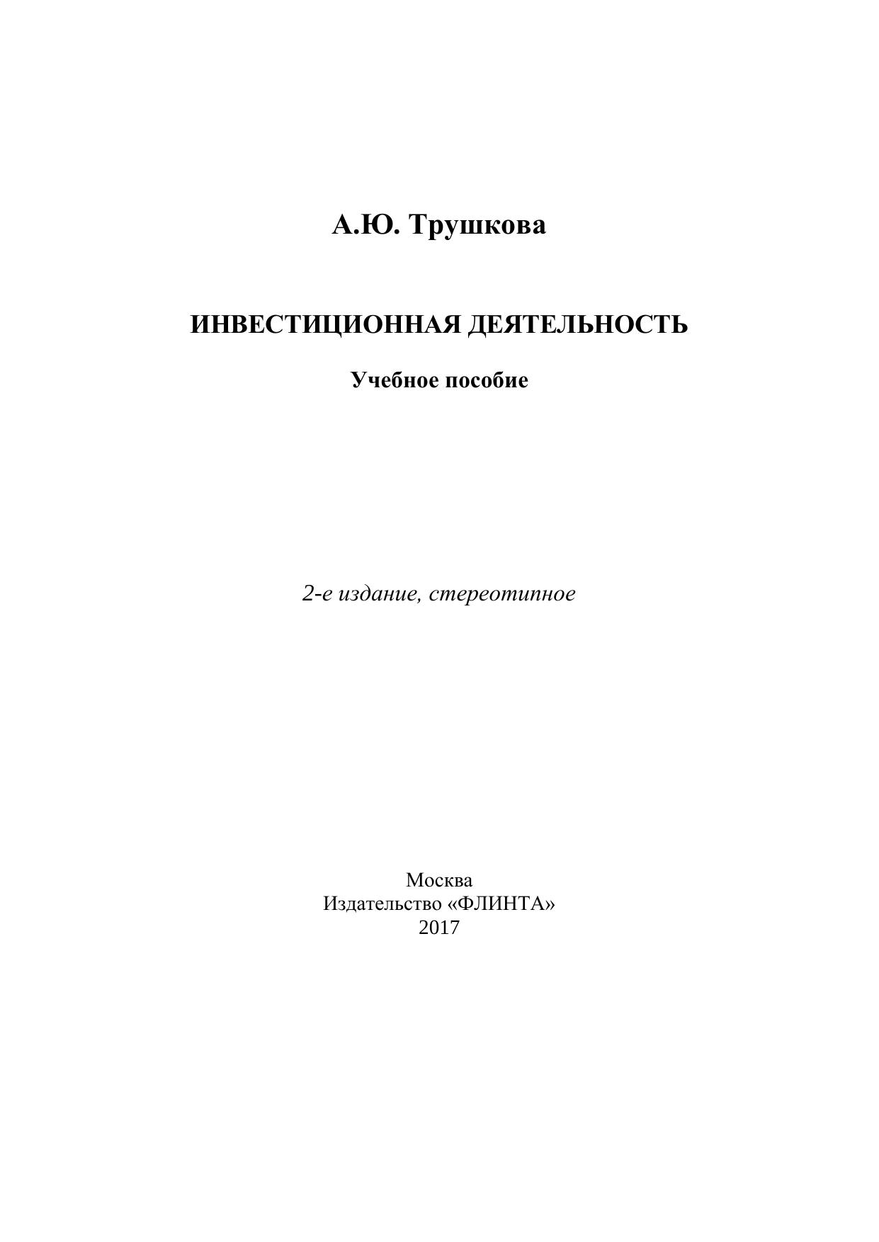 Инвестиционная деятельность: учебное пособие