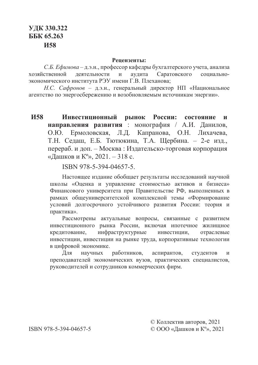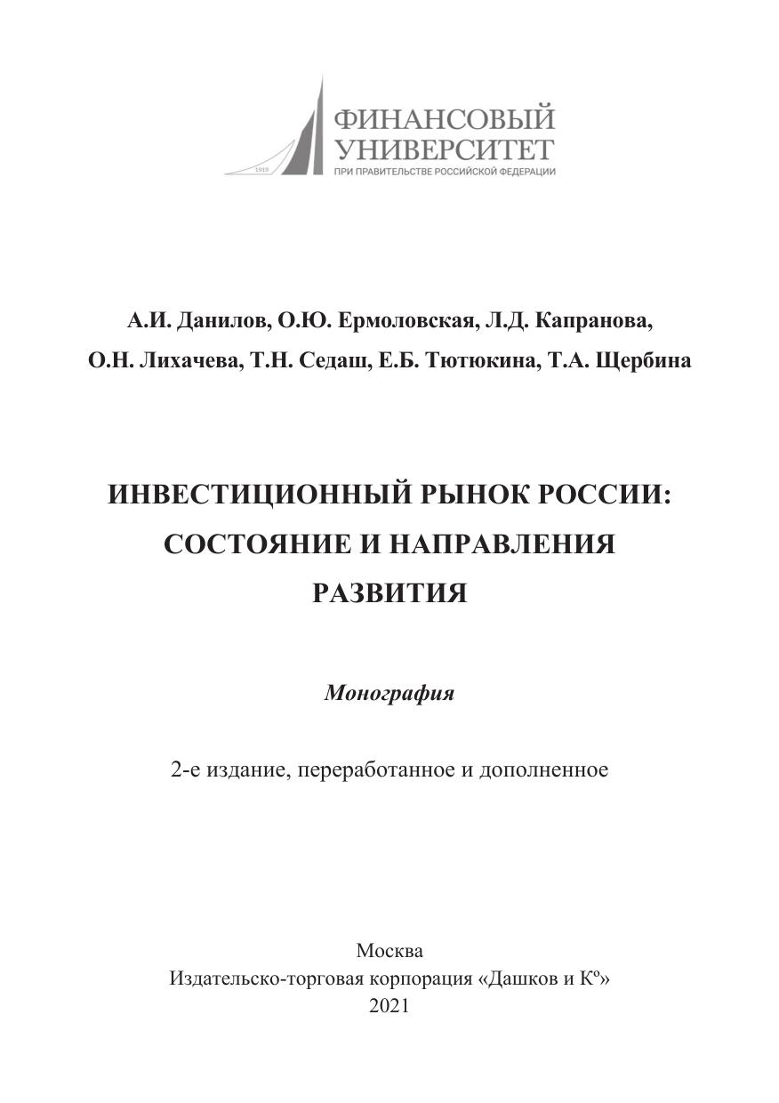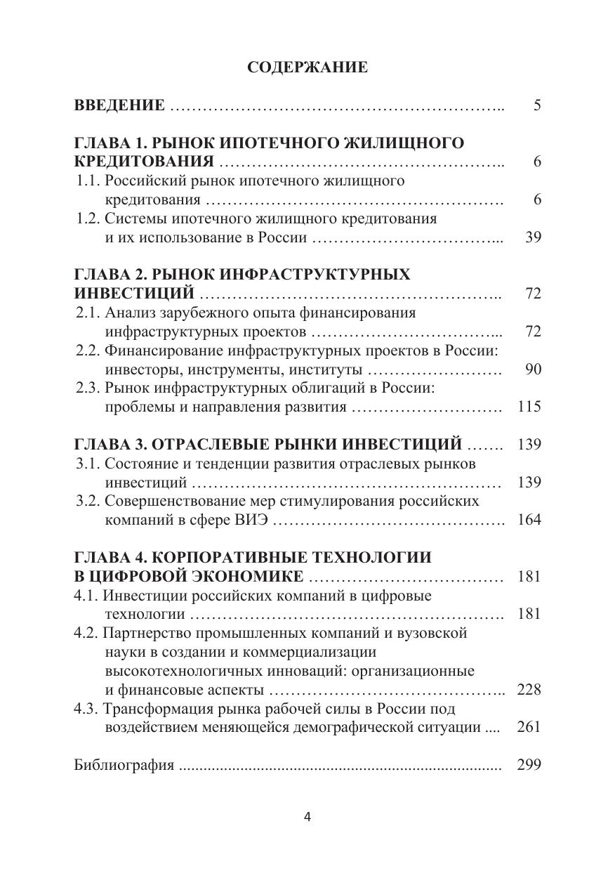 Рассмотрены актуальные вопросы, связанные с развитием инвестиционного рынка России, включая ипотечное жилищное кредитование, инфраструктурные инвестиции, отраслевые инвестиции, инвестиции на рынке труда, корпоративные технологии в цифровой экономике.