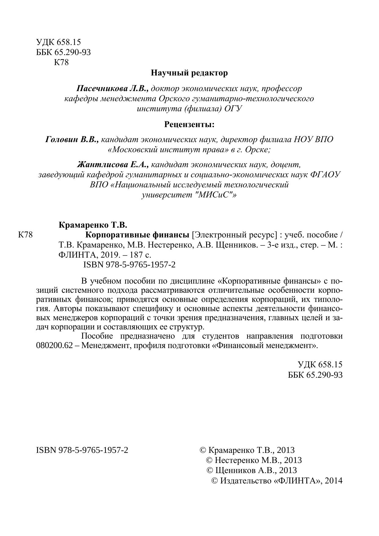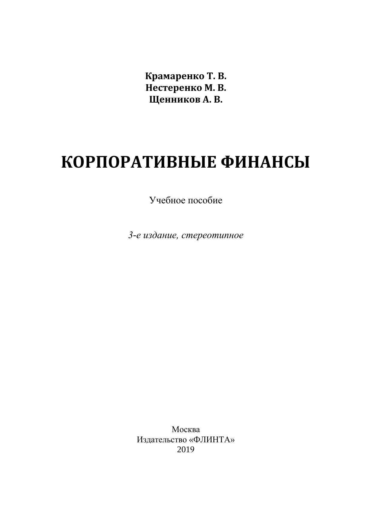 В учебном пособии по дисциплине «Корпоративные финансы» с по-зиций системного подхода рассматриваются отличительные особенности корпо-ративных финансов; приводятся основные определения корпораций, их типоло-гия. Авторы показывают специфику и основные аспекты деятельности финансовых менеджеров корпораций с точки зрения предназначения, главных целей и за-дач корпорации и составляющих ее структур.