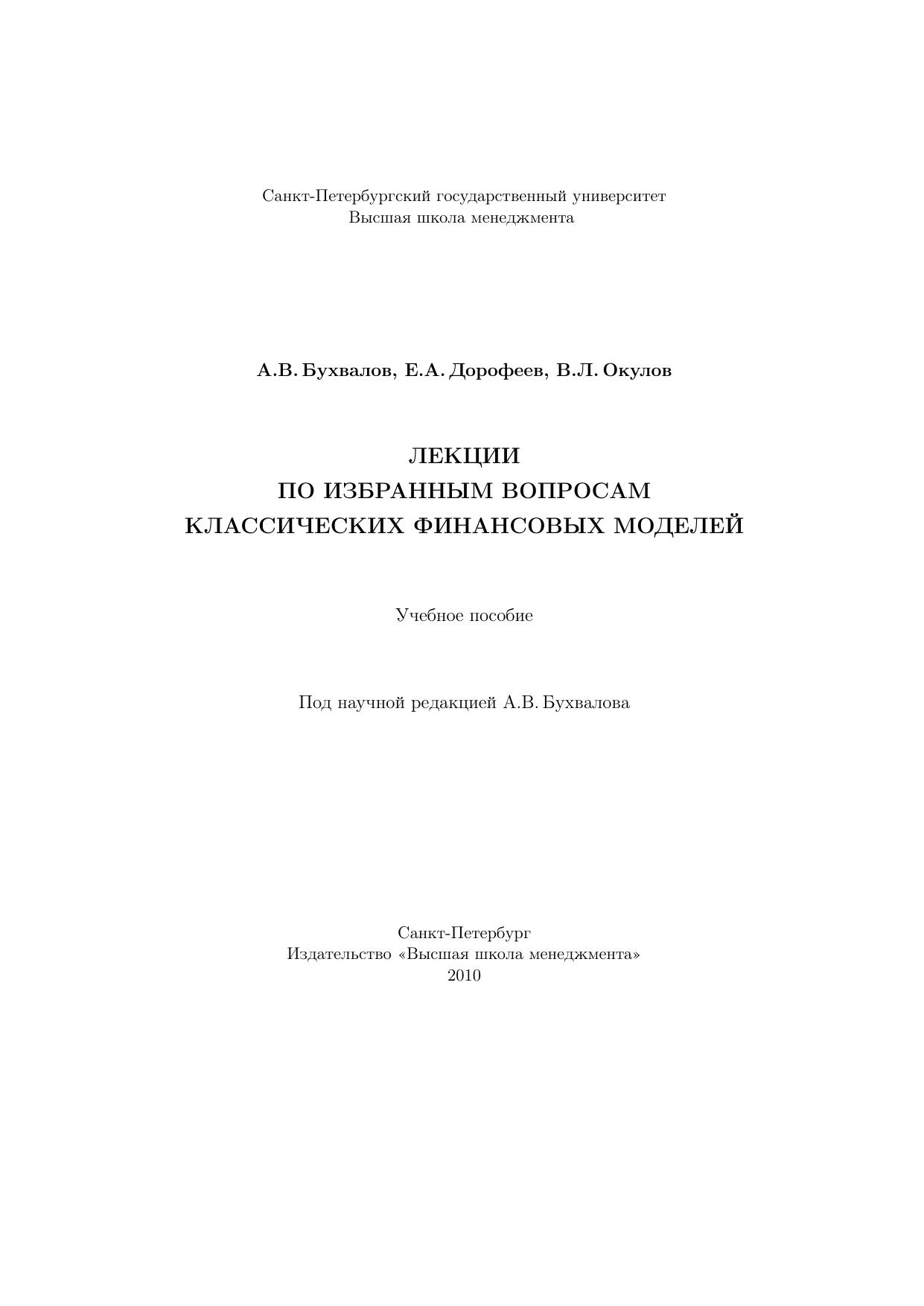 Лекции по избранным вопросам классических финансовых моделей