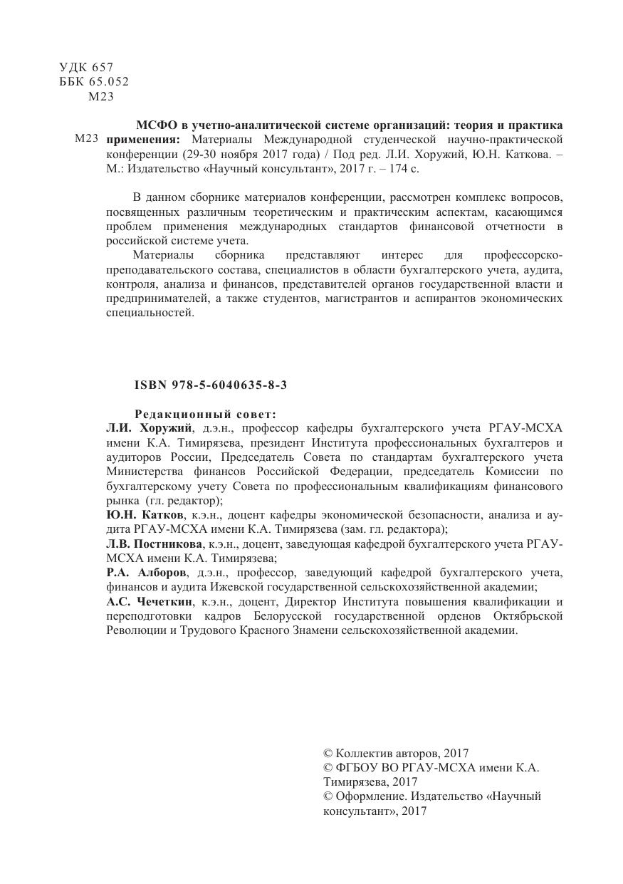 МСФО в учетно-аналитической системе организаций: теория и практика применения: Материалы Международной студенческой научно-практической конференции (29-30 ноября 2017 года)