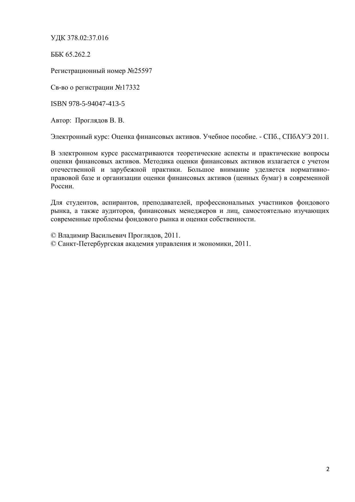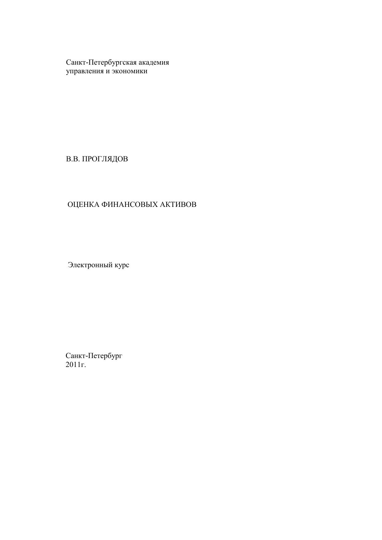 В электронном курсе рассматриваются теоретические аспекты и практические вопросы оценки финансовых активов. Методика оценки финансовых активов излагается с учетом отечественной и зарубежной практики. Большое внимание уделяется нормативно-правовой базе и организации оценки финансовых активов (ценных бумаг) в современной России. Для студентов, аспирантов, преподавателей, профессиональных участников фондового рынка, а также аудиторов, финансовых менеджеров и лиц, самостоятельно изучающих современные проблемы фондового рынка и оценки собственности.