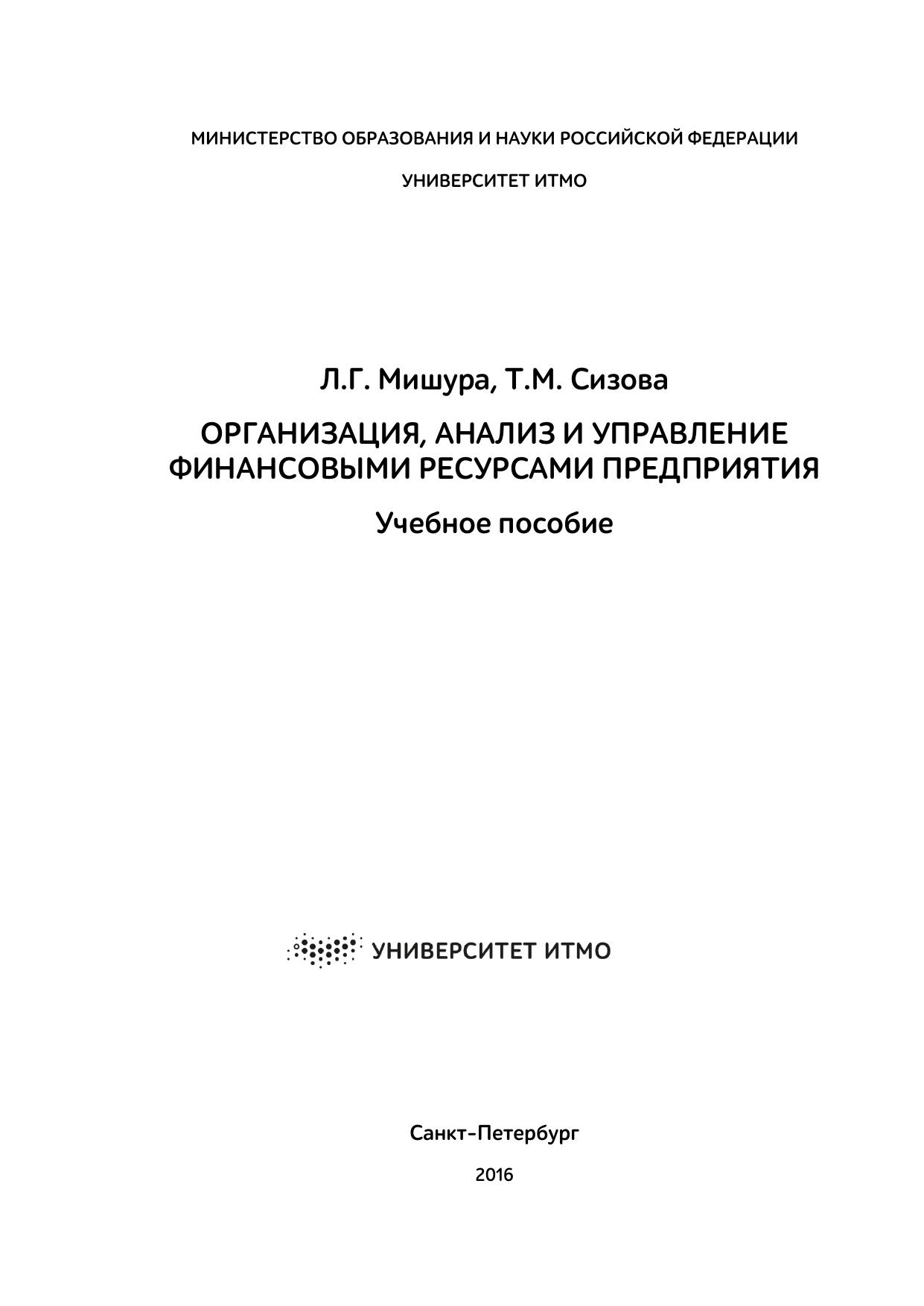 Организация, анализ и управление финансовыми ресурсами предприятия: Учебное пособие
