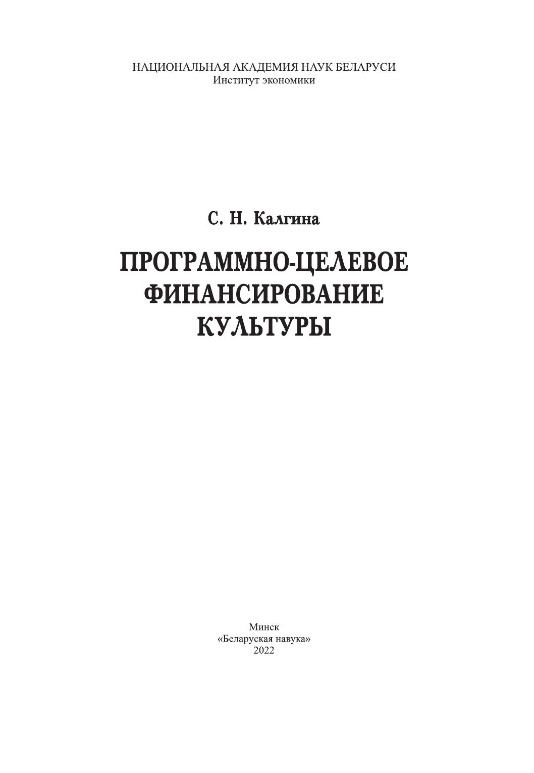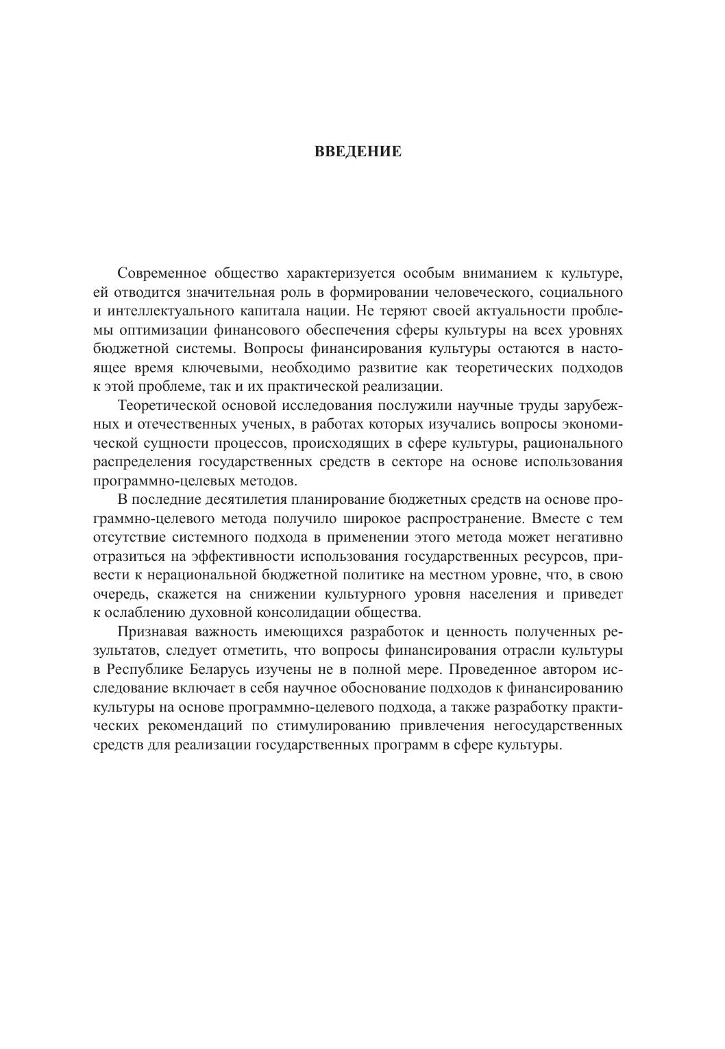 В монографии рассмотрены теоретические и практические аспекты использования программно-целевого финансирования в бюджетном процессе. Исследован зарубежный и отечественный опыт распределения бюджетных средств в сфере культуры на основе программно-целевого подхода. Изложены предложения по реформированию системы программно-целевого финансирования культуры в Республике Беларусь с целью усиления результативности использования государственных средств.