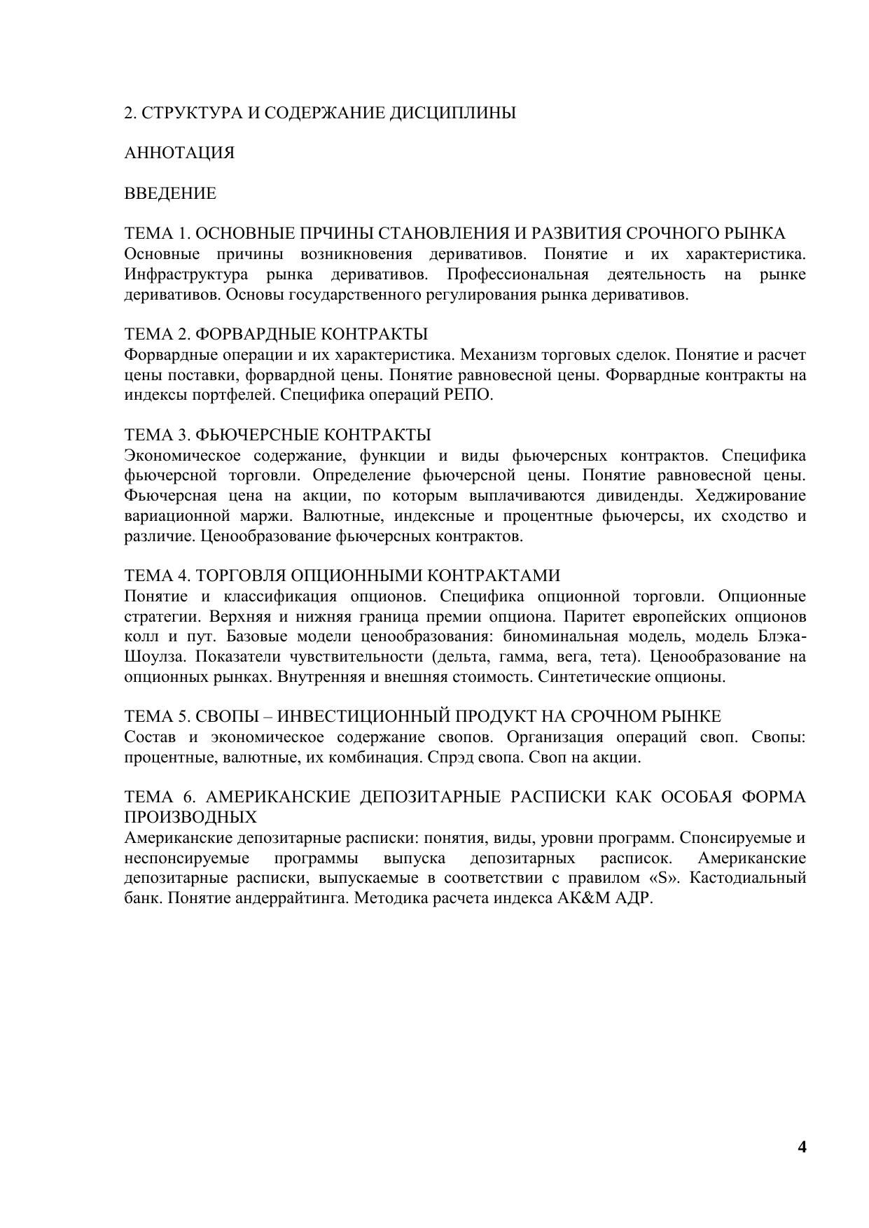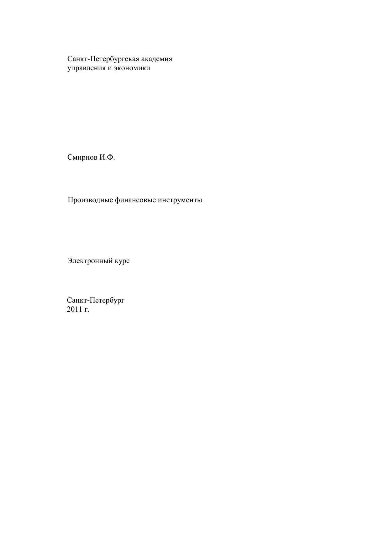 Электронный курс содержит основной материал по курсу «Производные финансовые инструменты» в соответствии с требованиями государственного стандарта высшего профессионального образования. Темы курса рассматриваются в соответствии с тематическим планом с использованием практических примеров. Отличительной особенностью электронного курса является то, что наряду с портфельными стратегиями рассматриваются хеджирующие, спекулятивные и арбитражные стратегии с привлечением производных финансовых инструментов. Использование деривативов как инструментов снижения систематических финансовых рисков, способствует повышению стабильности финансовой деятельности, минимизирует колебания прибыли, вызванные изменениями цен на процентные ставки и курсы валют, а также позволяет без особых усилий получить дополнительную прибыль в связи с изменениями цен на спотовом рынке. Большое внимание уделяется особенностям обращения АДР и ГДР, поскольку на рынке впервые формируется российская депозитарная расписка. Курс предназначен для специализированной подготовки магистров по программе 521620 – «Финансы» и 521600 «Экономика», а также для студентов вузов, обучающимся по финансовым специальностям