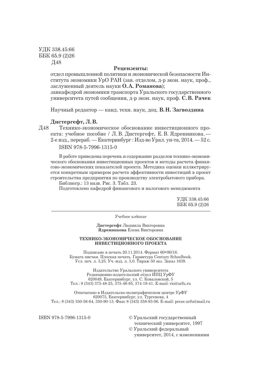 Технико-экономическое обоснование инвестиционного проекта: учебное пособие