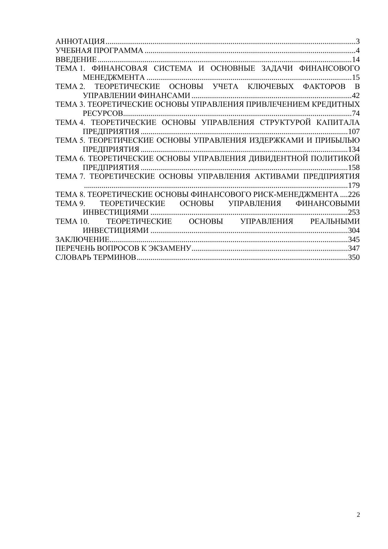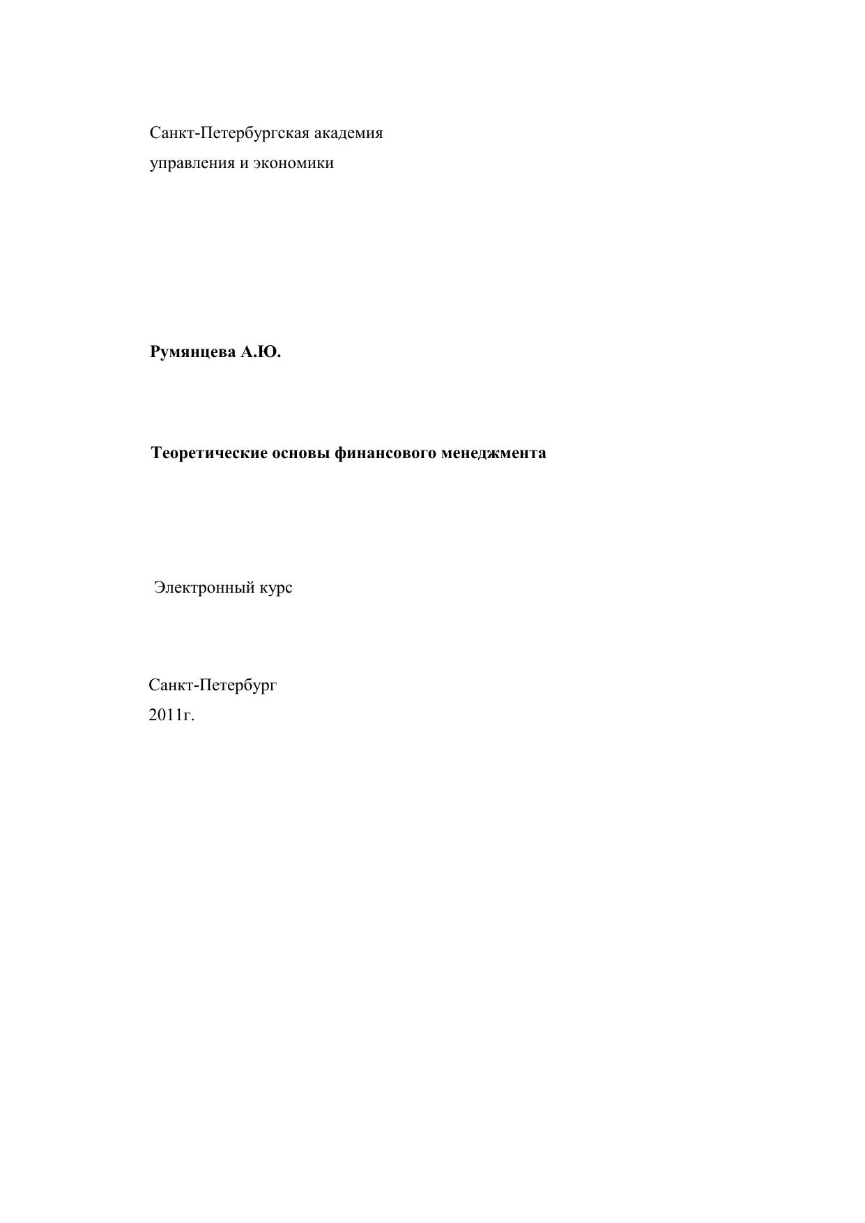 Теоретические основы финансового менеджмента