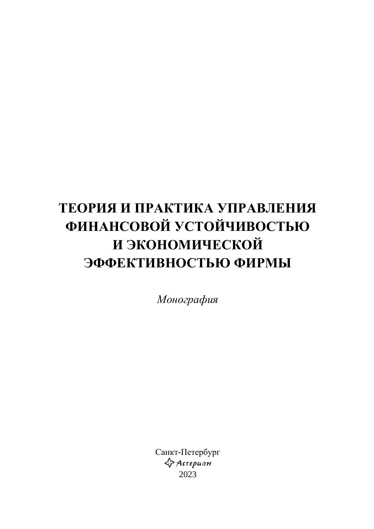 Теория и практика управления финансовой устойчивостью и экономической эффективностью фирмы
