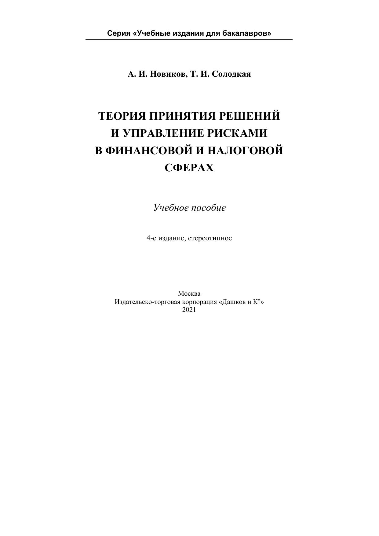 Теория принятия решений и управление рисками в финансовой и налоговой сферах