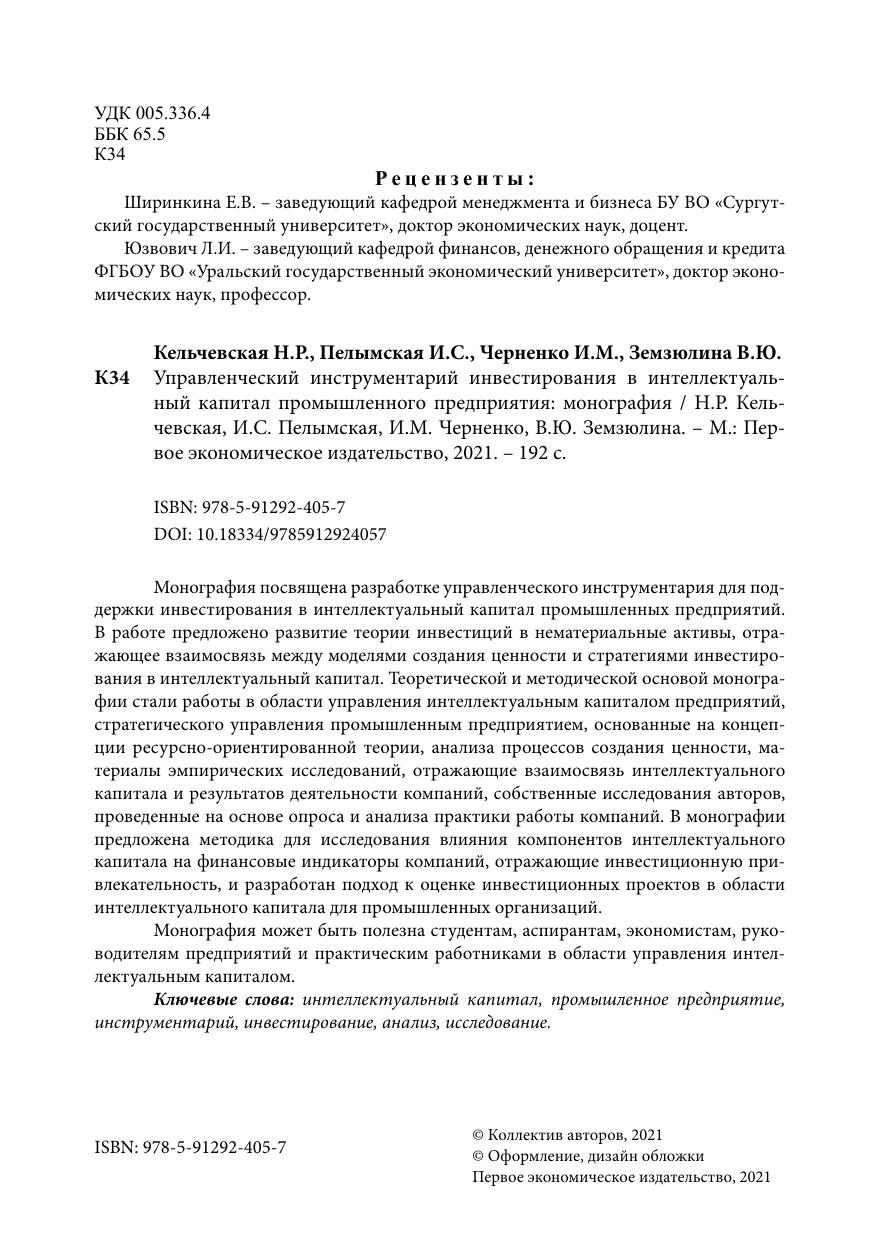 Монография может быть полезна студентам, аспирантам, экономистам, руководителям предприятий и практическим работниками в области управления интеллектуальным капиталом.