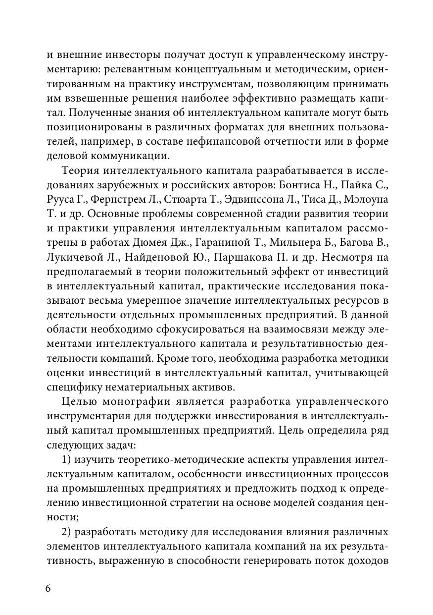 Монография посвящена разработке управленческого инструментария для поддержки инвестирования в интеллектуальный капитал промышленных предприятий. В работе предложено развитие теории инвестиций в нематериальные активы, отражающее взаимосвязь между моделями создания ценности и стратегиями инвестирования в интеллектуальный капитал. Теоретической и методической основой монографии стали работы в области управления интеллектуальным капиталом предприятий, стратегического управления промышленным предприятием, основанные на концепции ресурсно-ориентированной теории, анализа процессов создания ценности, материалы эмпирических исследований, отражающие взаимосвязь интеллектуального капитала и результатов деятельности компаний, собственные исследования авторов, проведенные на основе опроса и анализа практики работы компаний. В монографии предложена методика для исследования влияния компонентов интеллектуального капитала на финансовые индикаторы компаний, отражающие инвестиционную привлекательность, и разработан подход к оценке инвестиционных проектов в области интеллектуального капитала для промышленных организаций.