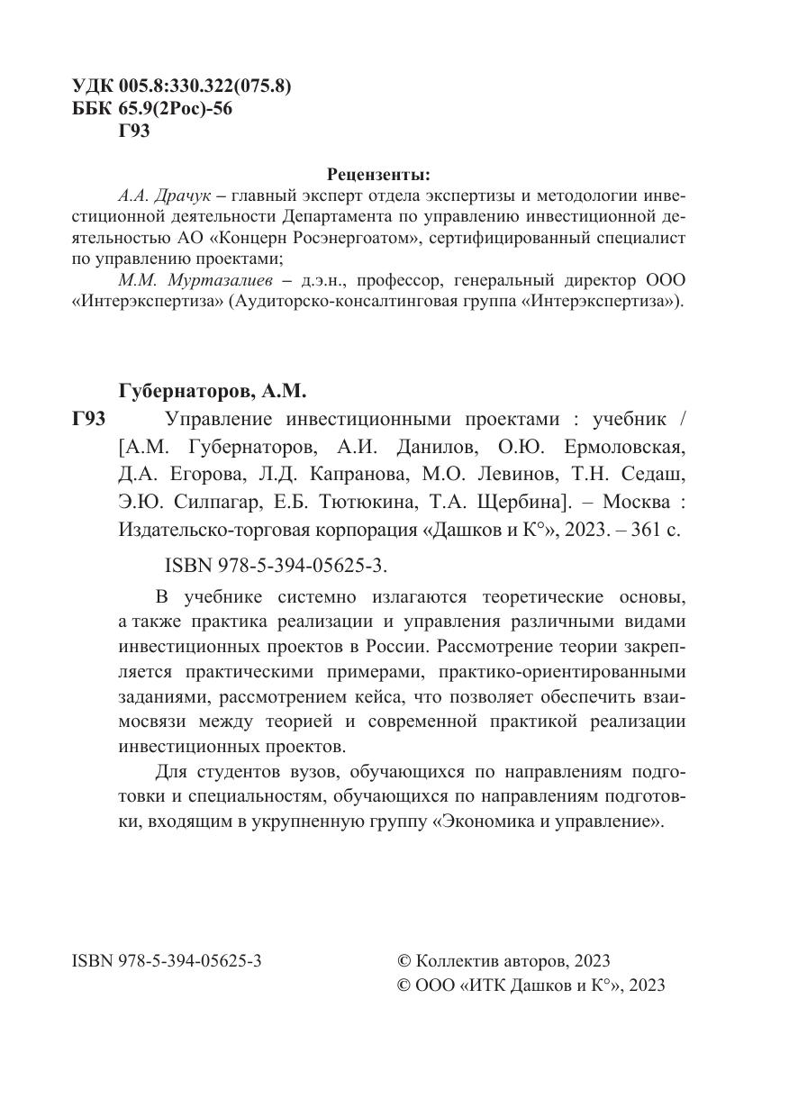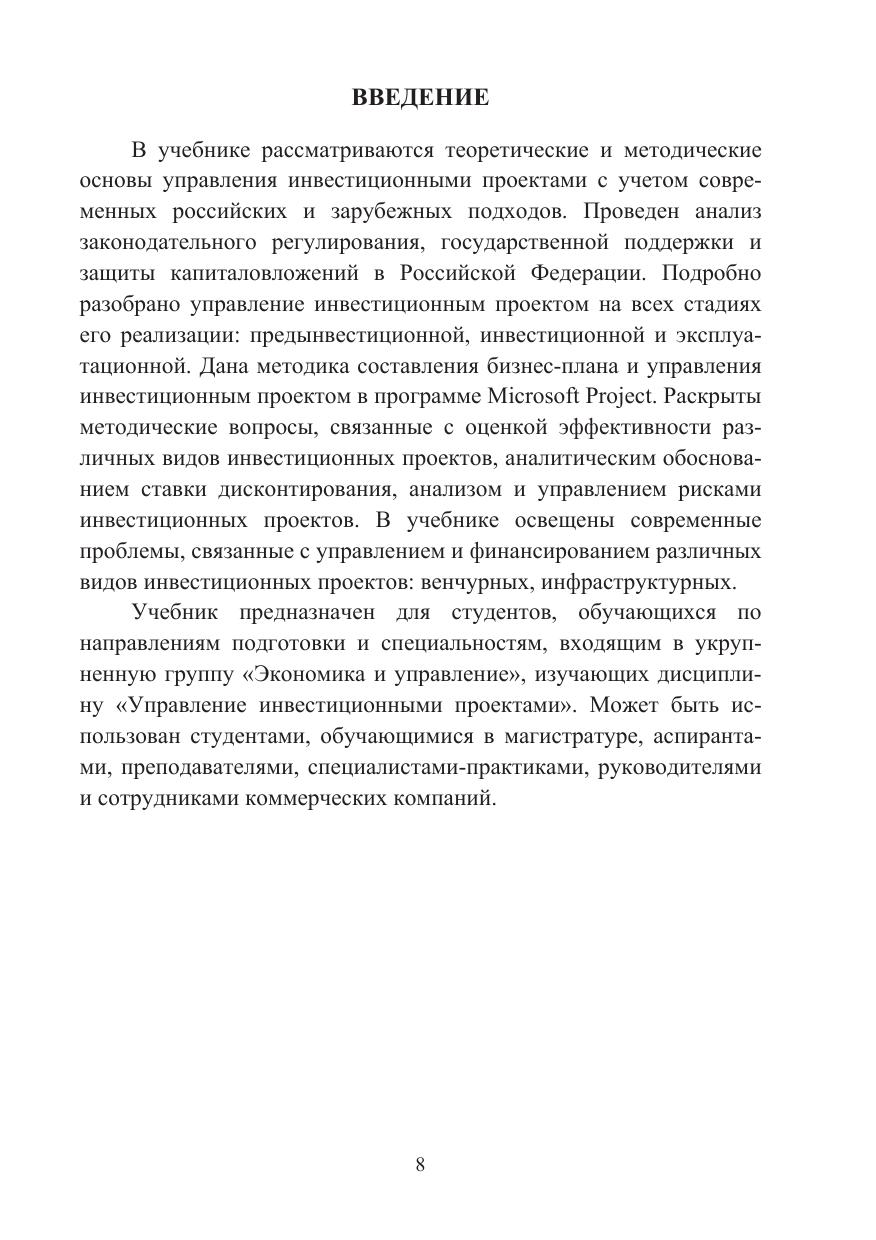В учебнике системно излагаются теоретические основы, а также практика реализации и управления различными видами инвестиционных проектов в России. Рассмотрение теории закрепляется практическими примерами, практико-ориентированными заданиями, рассмотрением кейса, что позволяет обеспечить взаимосвязи между теорией и современной практикой реализации инвестиционных проектов.