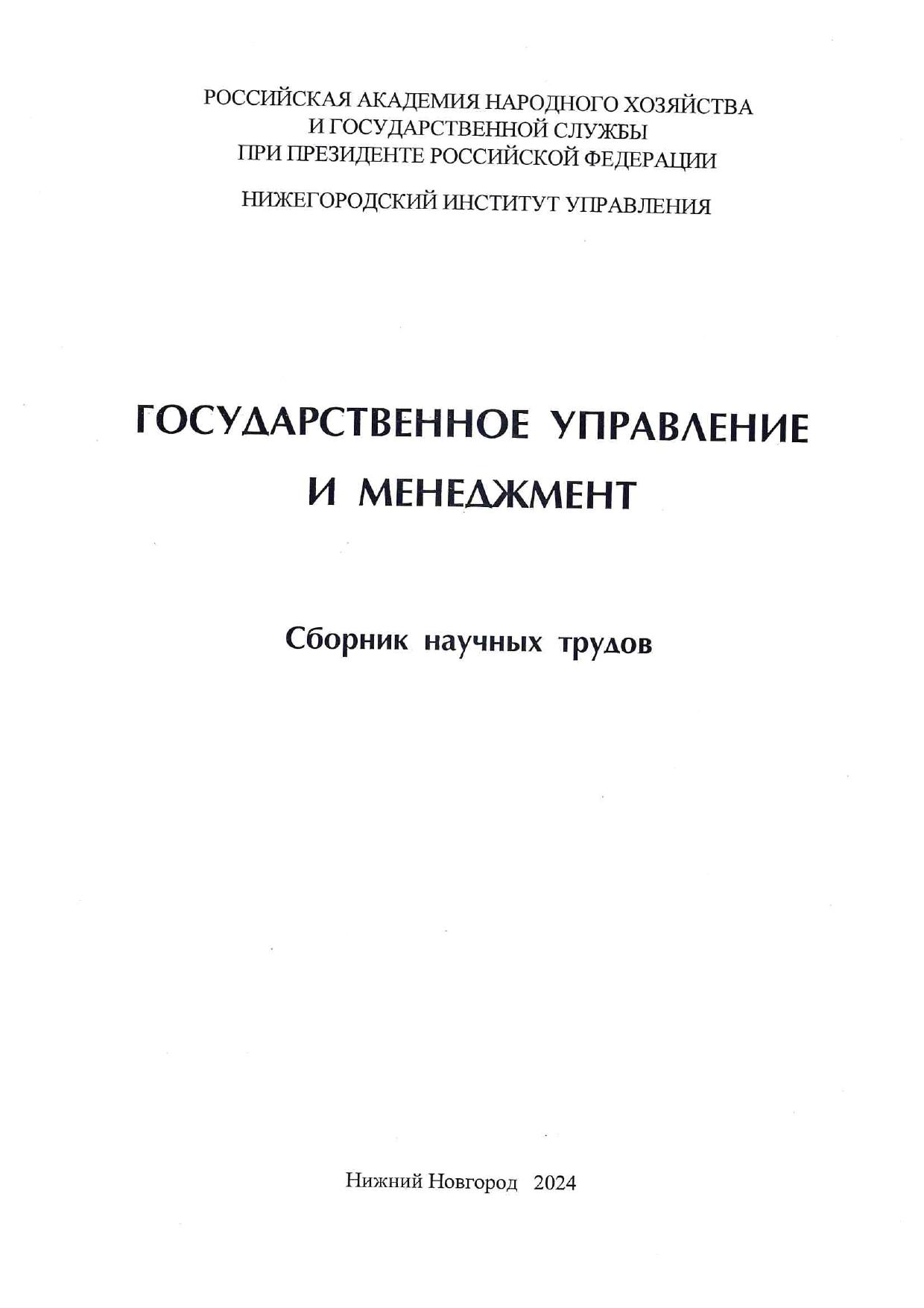 Государственное управление и менеджмент: сборник научных трудов по результатам Всероссийской научно-практической конференции (15 декабря 2023 г.): в 3-х томах. Том 2
