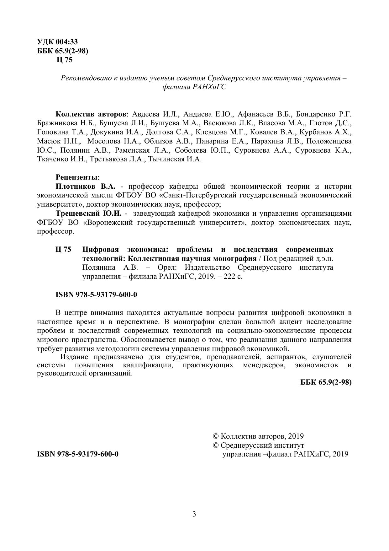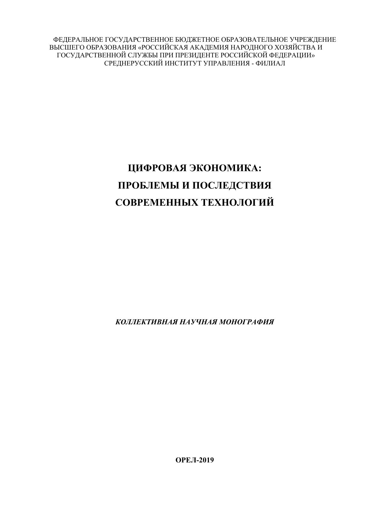 В центре внимания находятся актуальные вопросы развития цифровой экономики в настоящее время и в перспективе. В монографии сделан большой акцент исследование проблем и последствий современных технологий на социально-экономические процессы мирового пространства. Обосновывается вывод о том, что реализация данного направления требует развития методологии системы управления цифровой экономикой. Издание предназначено для студентов, преподавателей, аспирантов, слушателей системы повышения квалификации, практикующих менеджеров, экономистов и руководителей организаций.