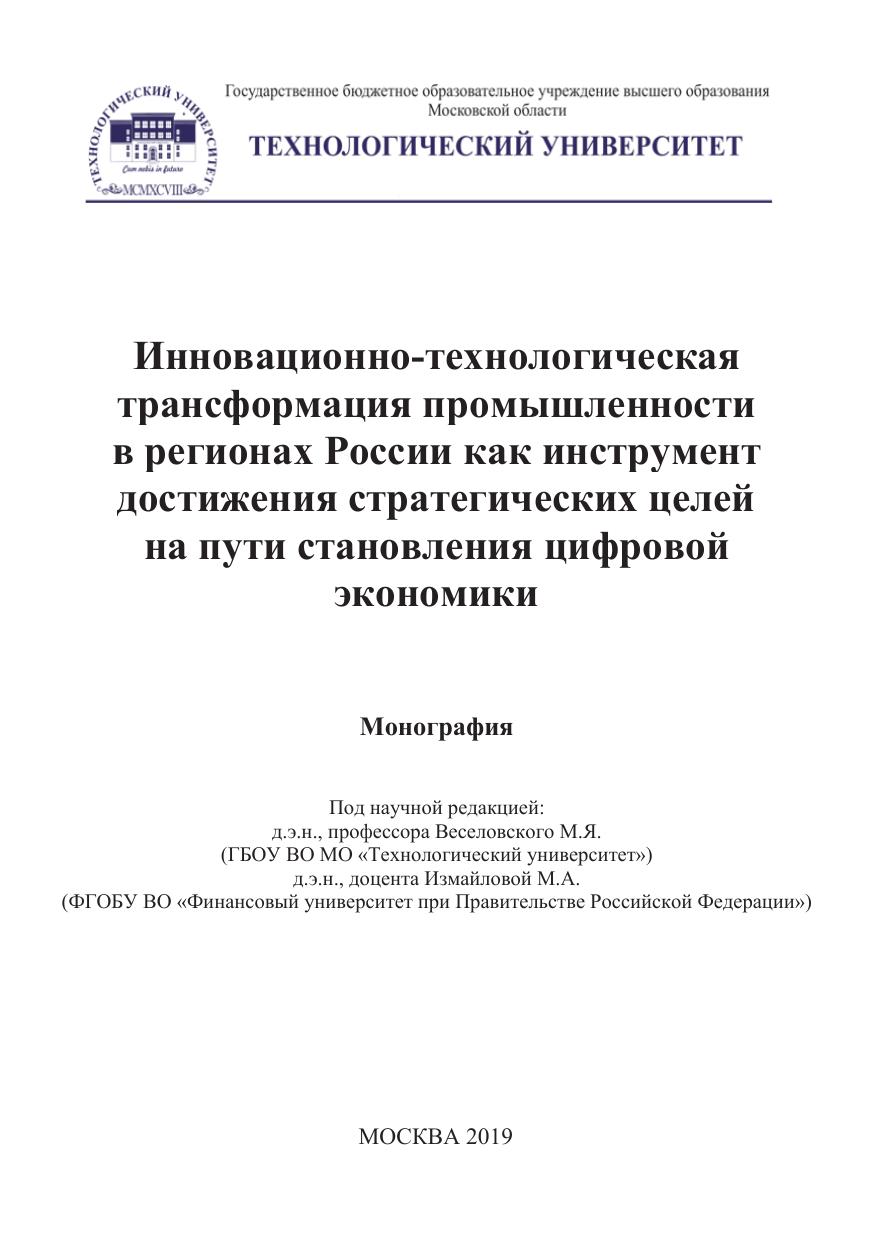 Инновационно-технологическая трансформация промышленности в регионах России как инструмент достижения стратегических целей на пути становления цифровой экономики