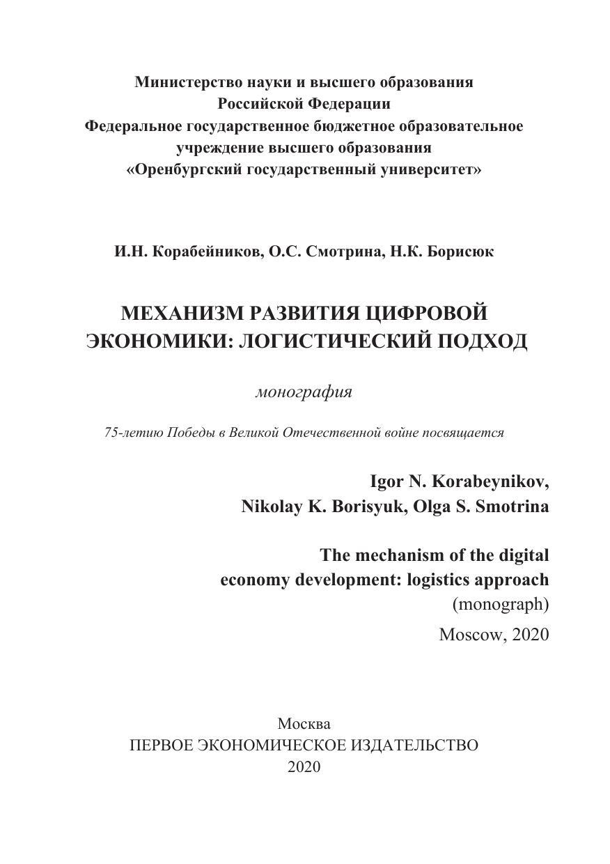 Механизм развития цифровой экономики: логистический подход