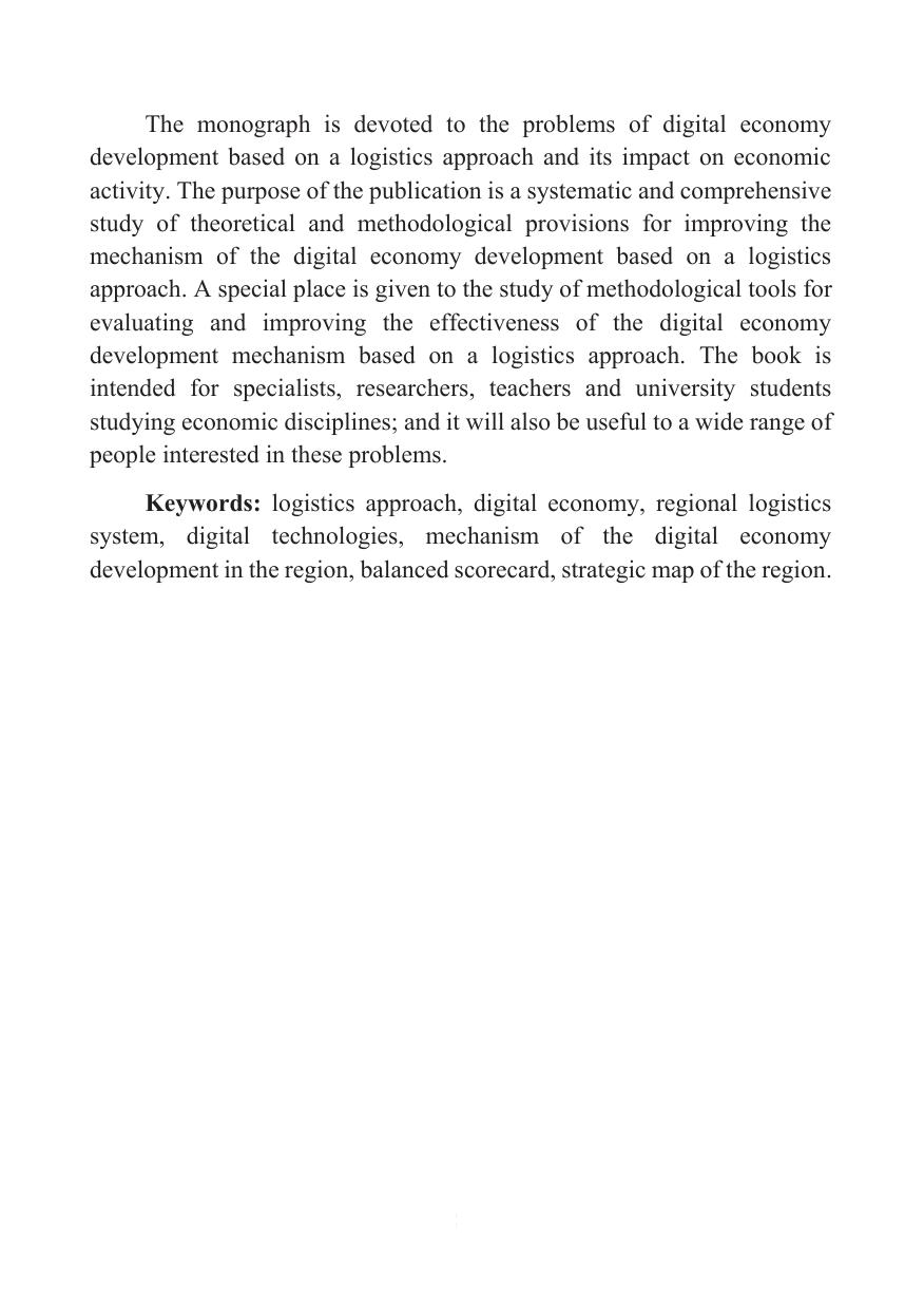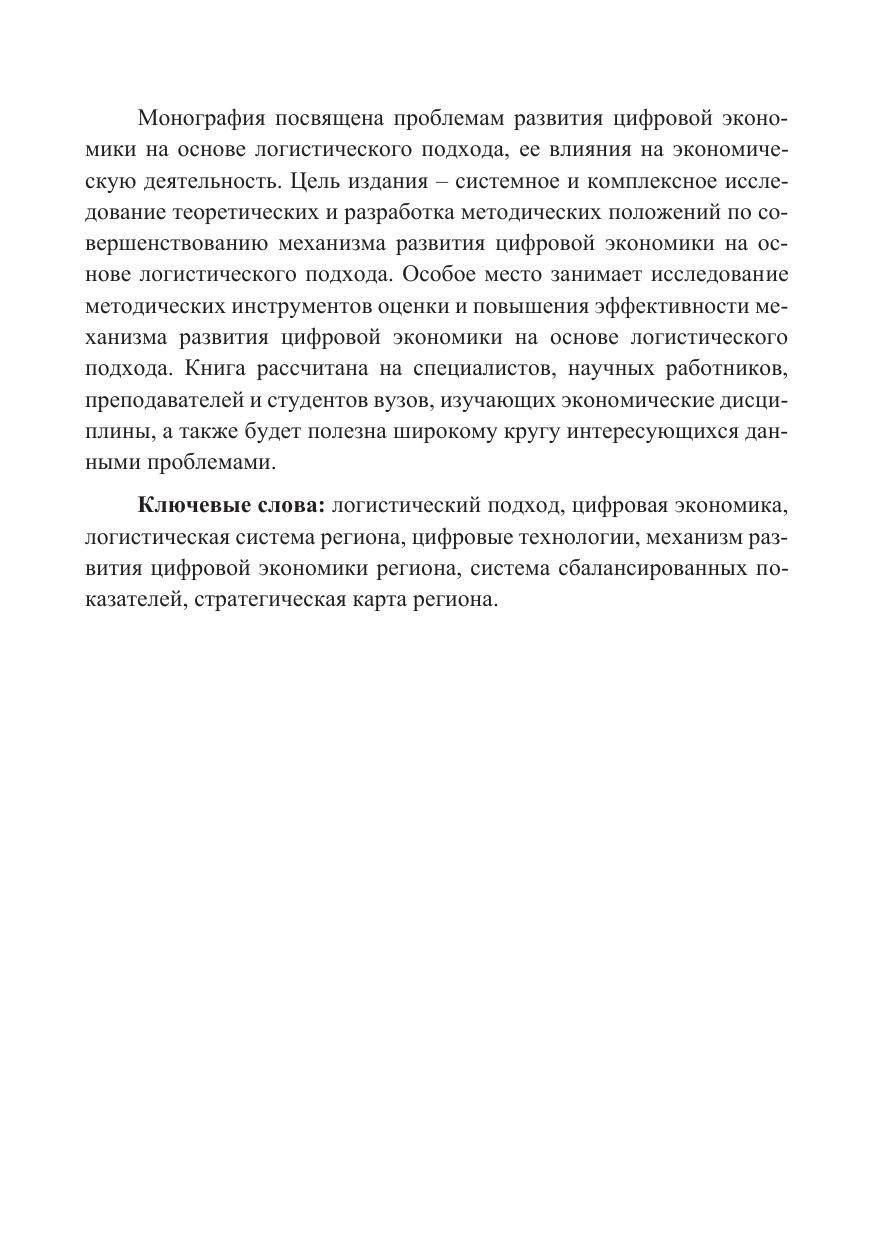 Монография посвящена проблемам развития цифровой экономики на основе логистического подхода, ее влияния на экономическую деятельность. Цель издания – системное и комплексное исследование теоретических и разработка методических положений по совершенствованию механизма развития цифровой экономики на основе логистического подхода. Особое место занимает исследование методических инструментов оценки и повышения эффективности механизма развития цифровой экономики на основе логистического подхода. Книга рассчитана на специалистов, научных работников, преподавателей и студентов вузов, изучающих экономические дисциплины, а также будет полезна широкому кругу интересующихся данными проблемами.