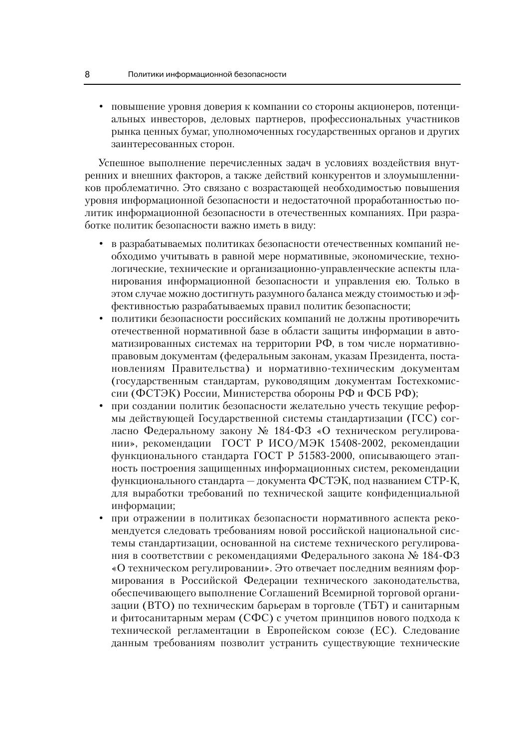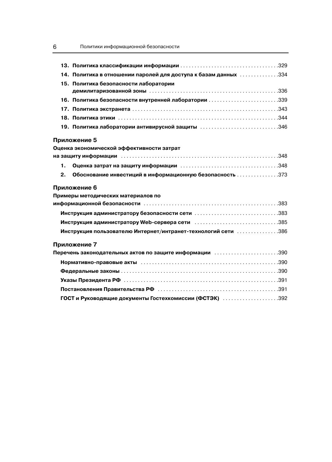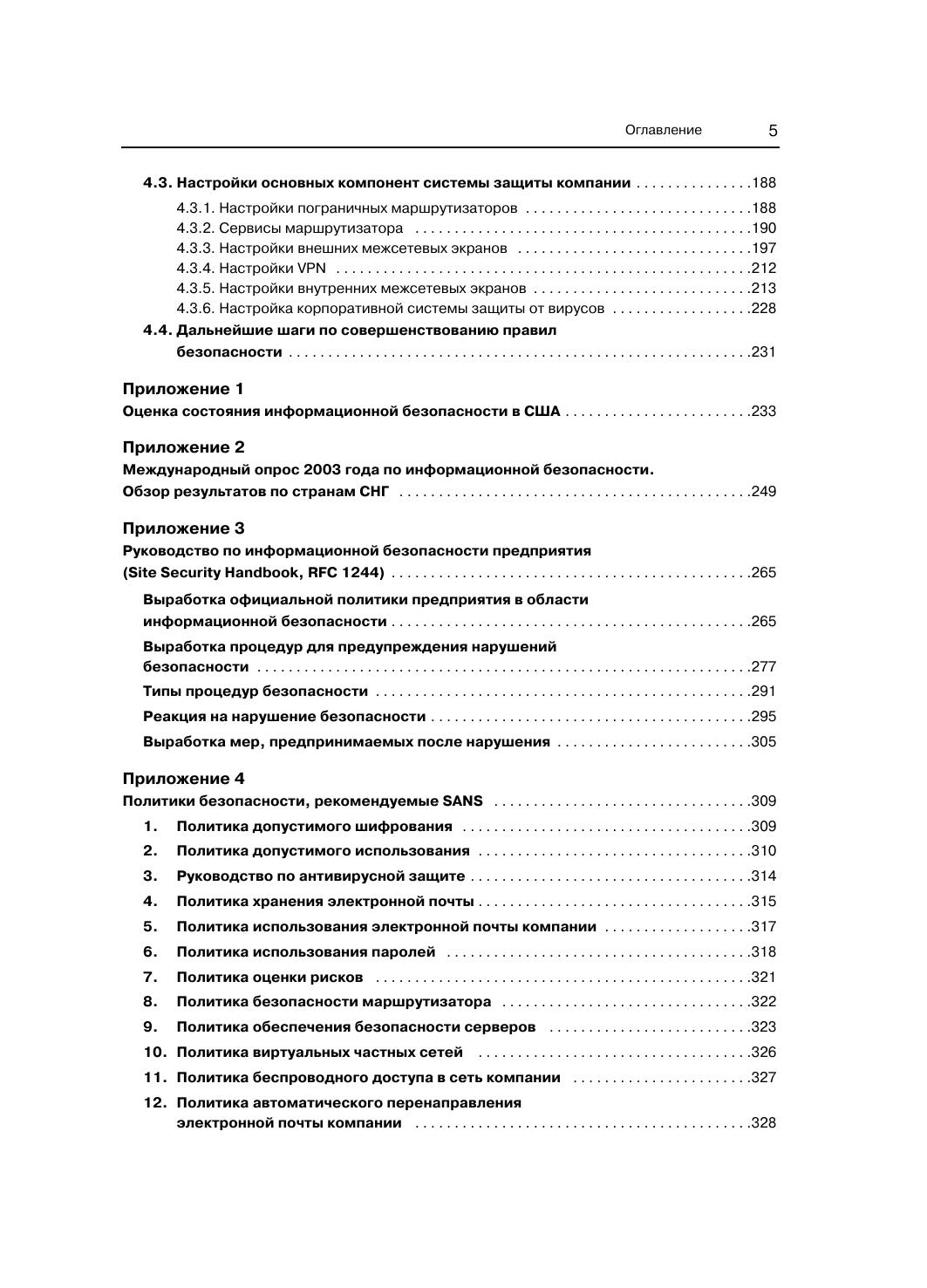 Книга является первым полным русскоязычным практическим руководством по вопросам разработки политик информационной безопасности в отечественных компаниях и организациях и отличается от других источников, преимущественно изданных за рубежом, тем, что в ней последовательно изложены все основные идеи, методы и способы практического решения вопросов разработки, внедрения и поддержки политик безопасности в различных российских государственных и коммерческих структурах. Книга может быть полезна руководителям служб автоматизации (CIO) и служб информационной безопасности (CISO), ответственным за утверждение политик безопасности и организацию режима информационной безопасности, внутренним и внешним аудиторам (CISA), менеджерам высшего эшелона управления компанией (ТОР менеджерам), которым приходится разрабатывать и внедрять политики безопасности в компании, администраторам безопасности, системным и сетевым администраторам, администраторам БД, которые отвечают за соблюдение правил безопасности в отечественных корпоративных информационных системах. Книга также может использоваться в качестве учебного пособия студентами и аспирантами соответствующих технических специальностей.