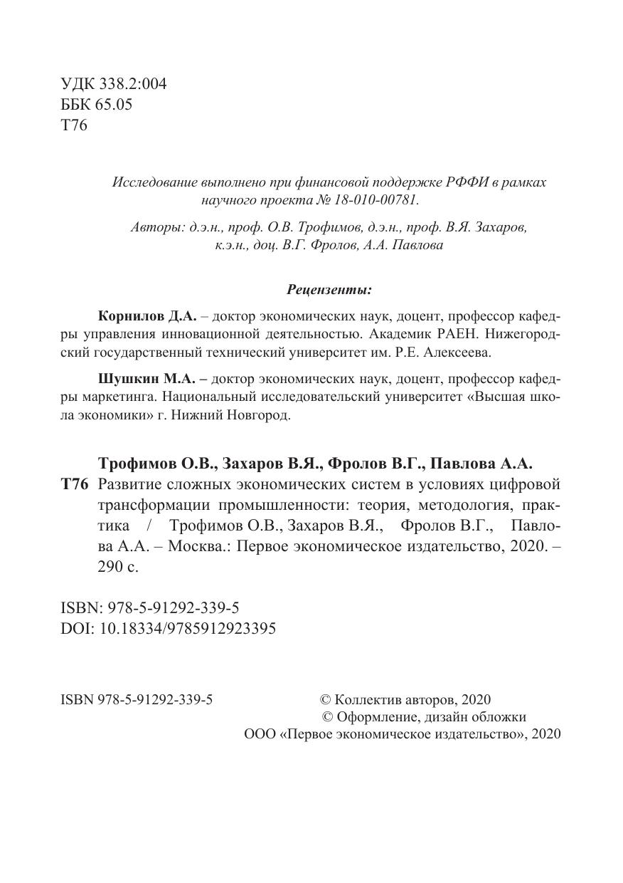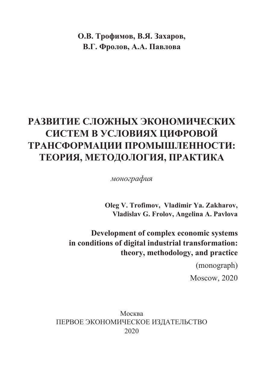 Развитие сложных экономических систем в условиях цифровой трансформации промышленности: теория, методология, практика