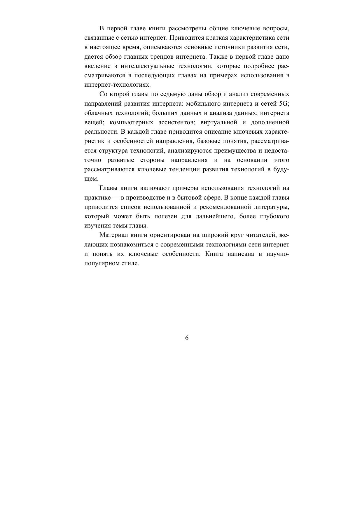 Предприниматели, занимающиеся инновационными направлениями, которые взаимодействуют с сетью интернет, смогут найти в книге варианты для развития своих систем. Аспиранты и студенты, обучающиеся по ИТ-направлениям, основываясь на материале книги, смогут выбрать тематику диссертации, выпускной квалификационной работы или курсового проекта для проведения детальных исследований в соответствующей области. Также книга будет полезна широкому кругу читателей, которые интересуются направлениями развития технологий сети интернет.