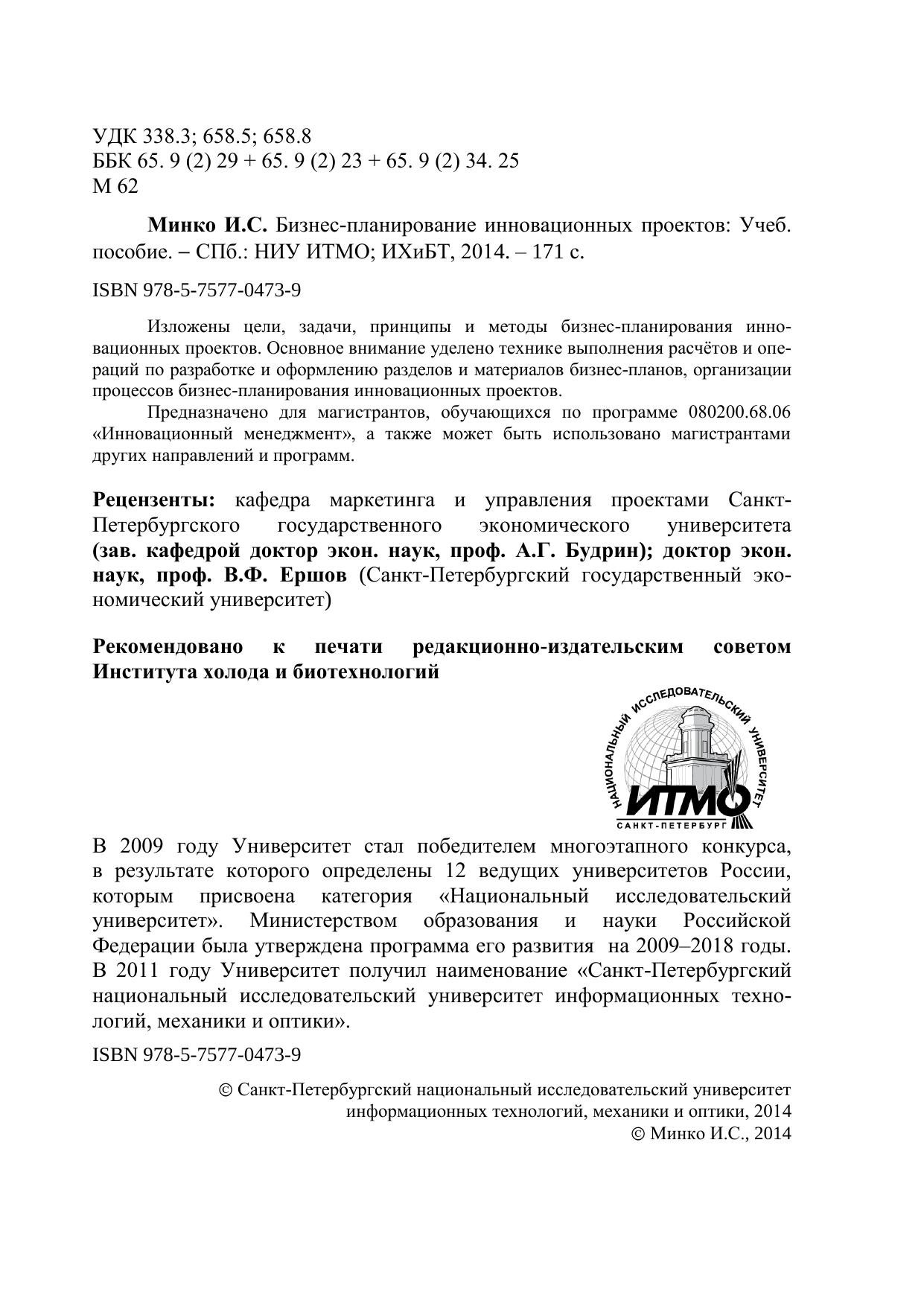 Бизнес-планирование инновационных проектов