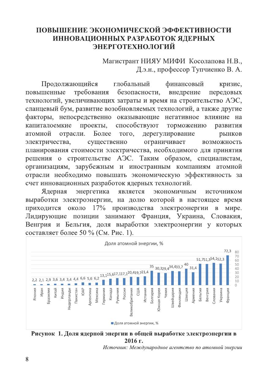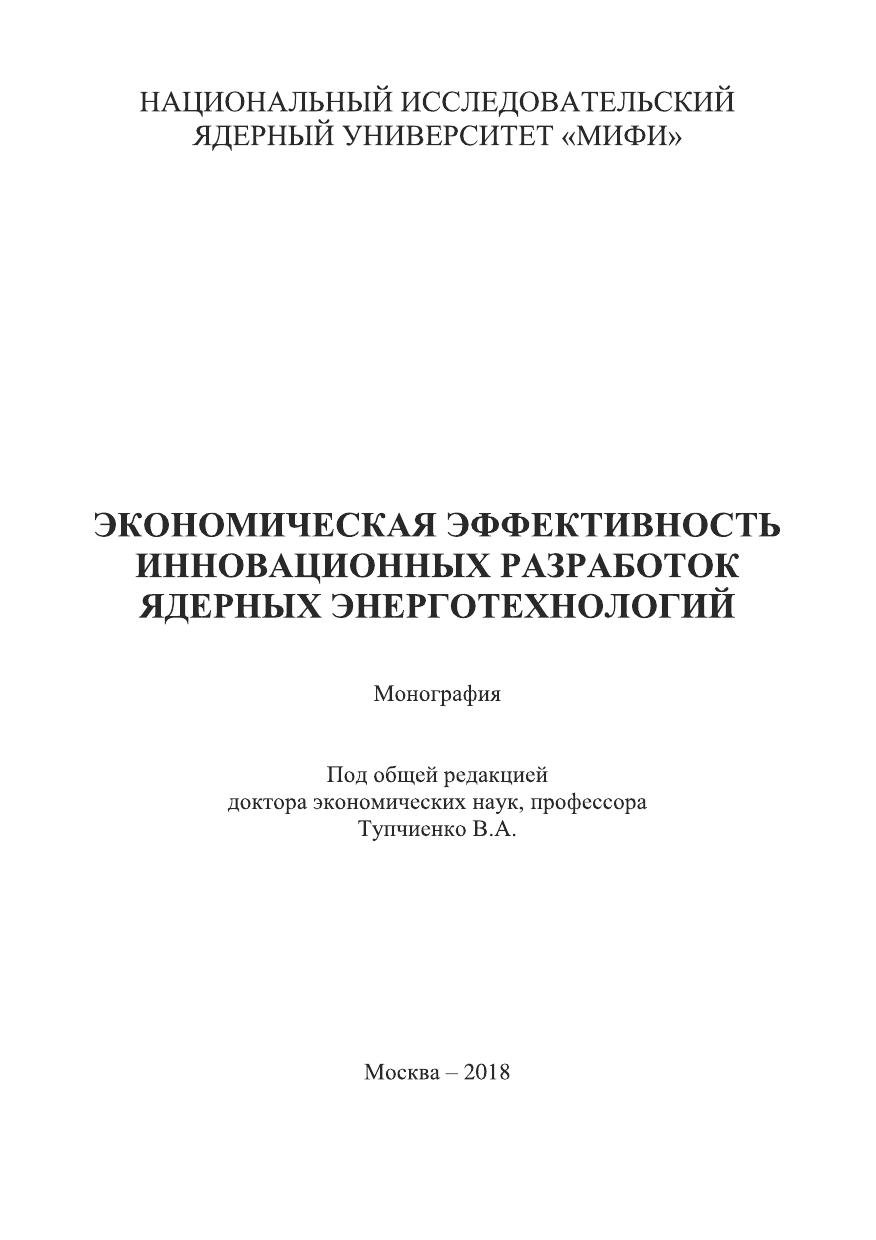 Экономическая эффективность инновационных разработок ядерных энерготехнологий