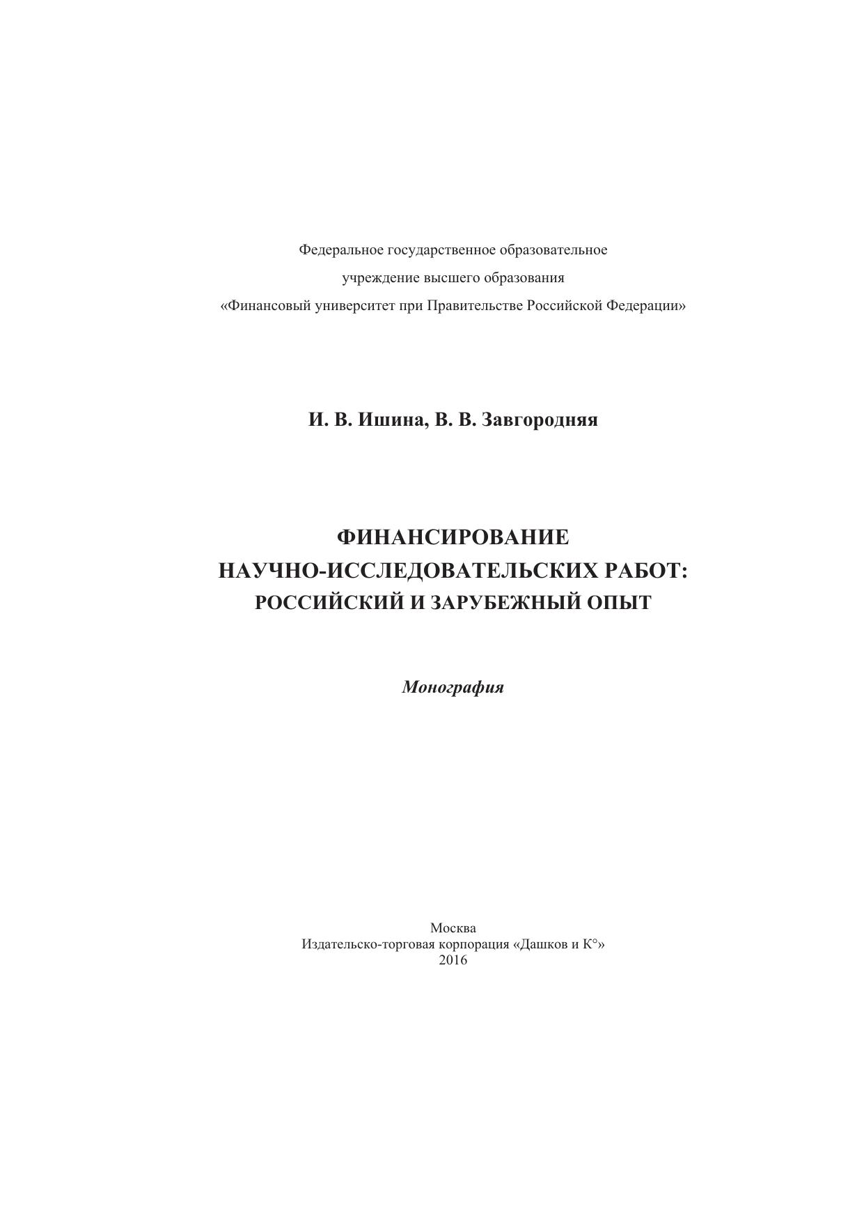 Финансирование научно-исследовательских работ: российский и зарубежный опыт: монография