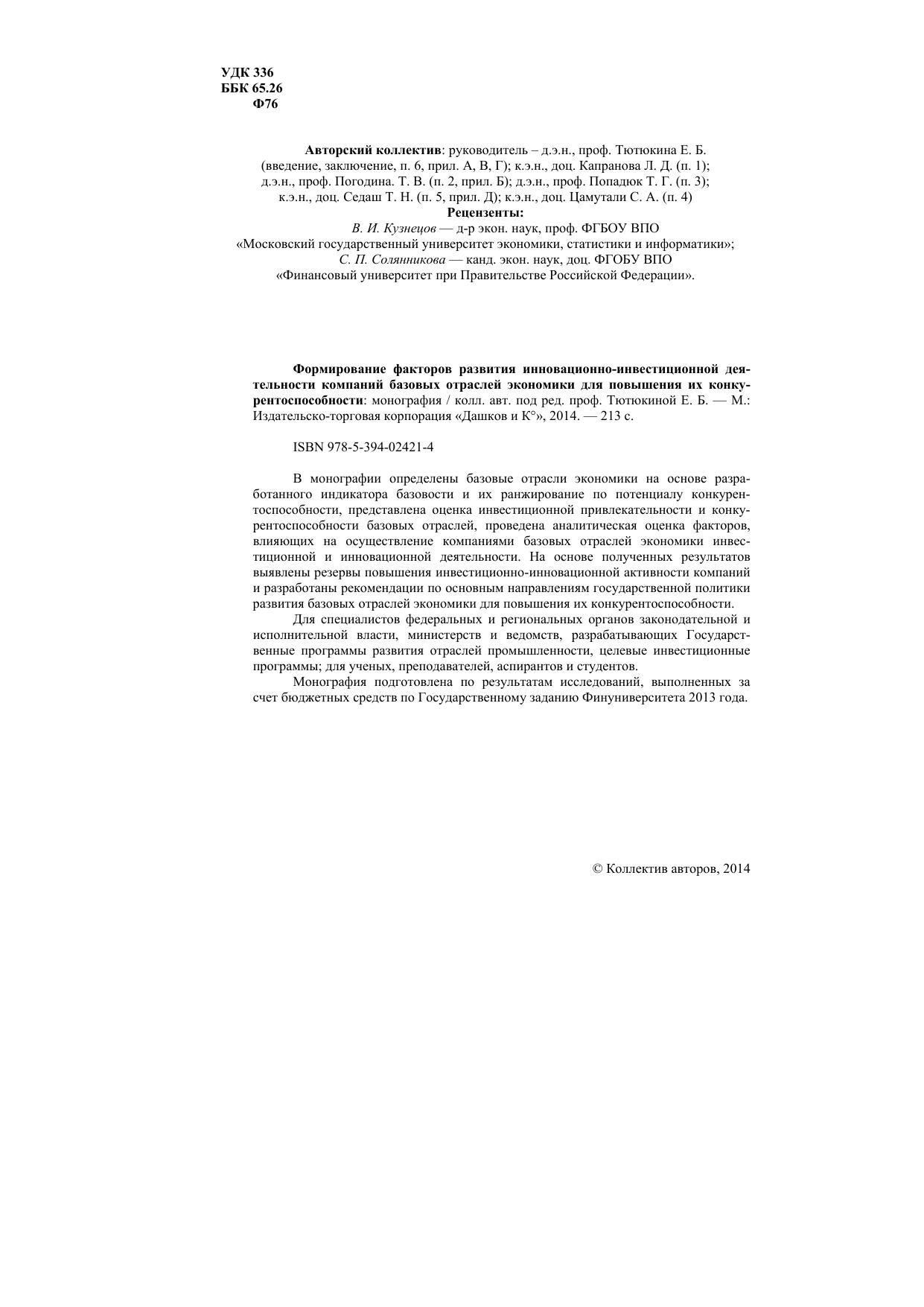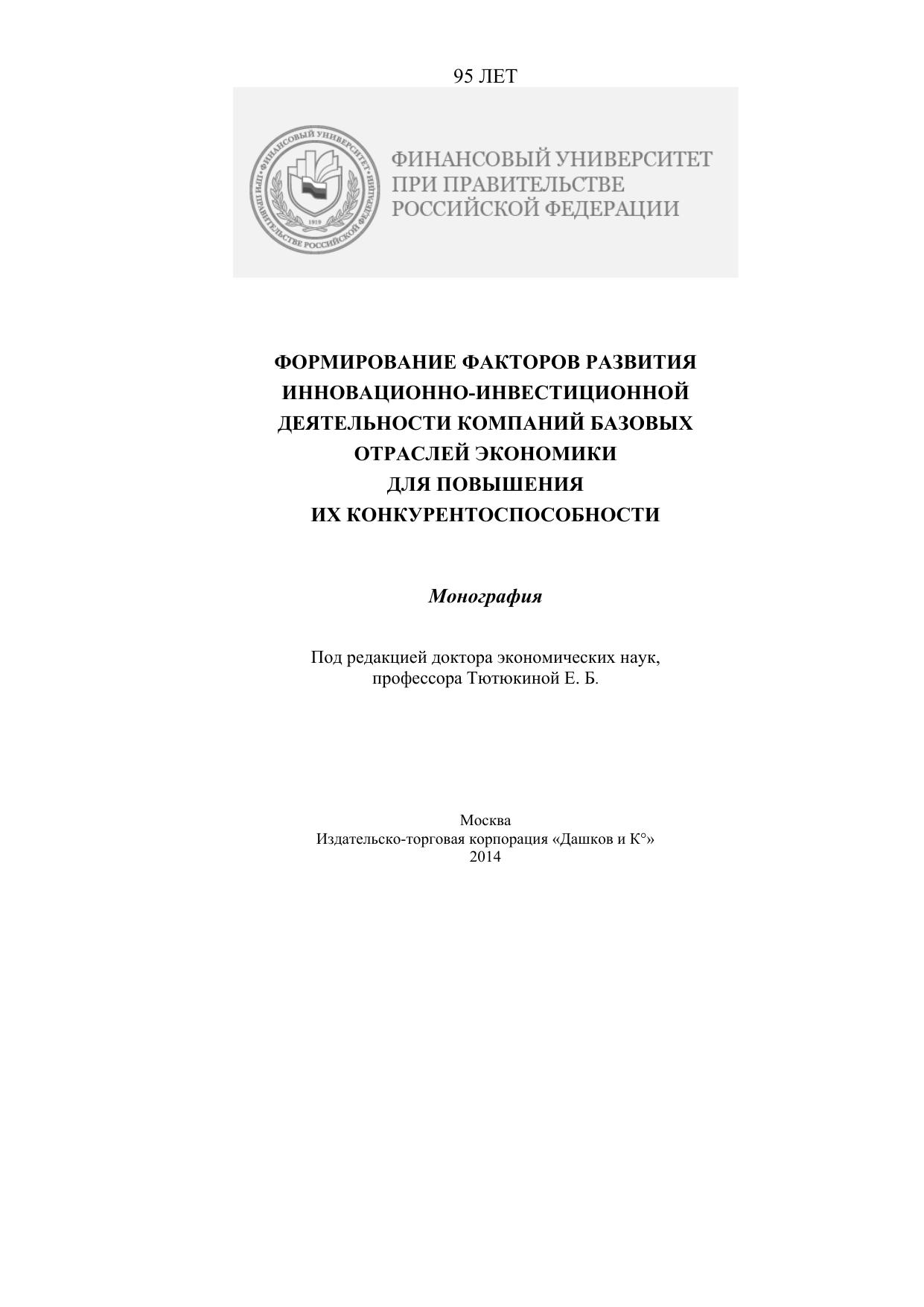 Формирование факторов развития инновационно-инвестиционной деятельности компаний базовых отраслей экономики для повышения их конкурентоспособности: Монография