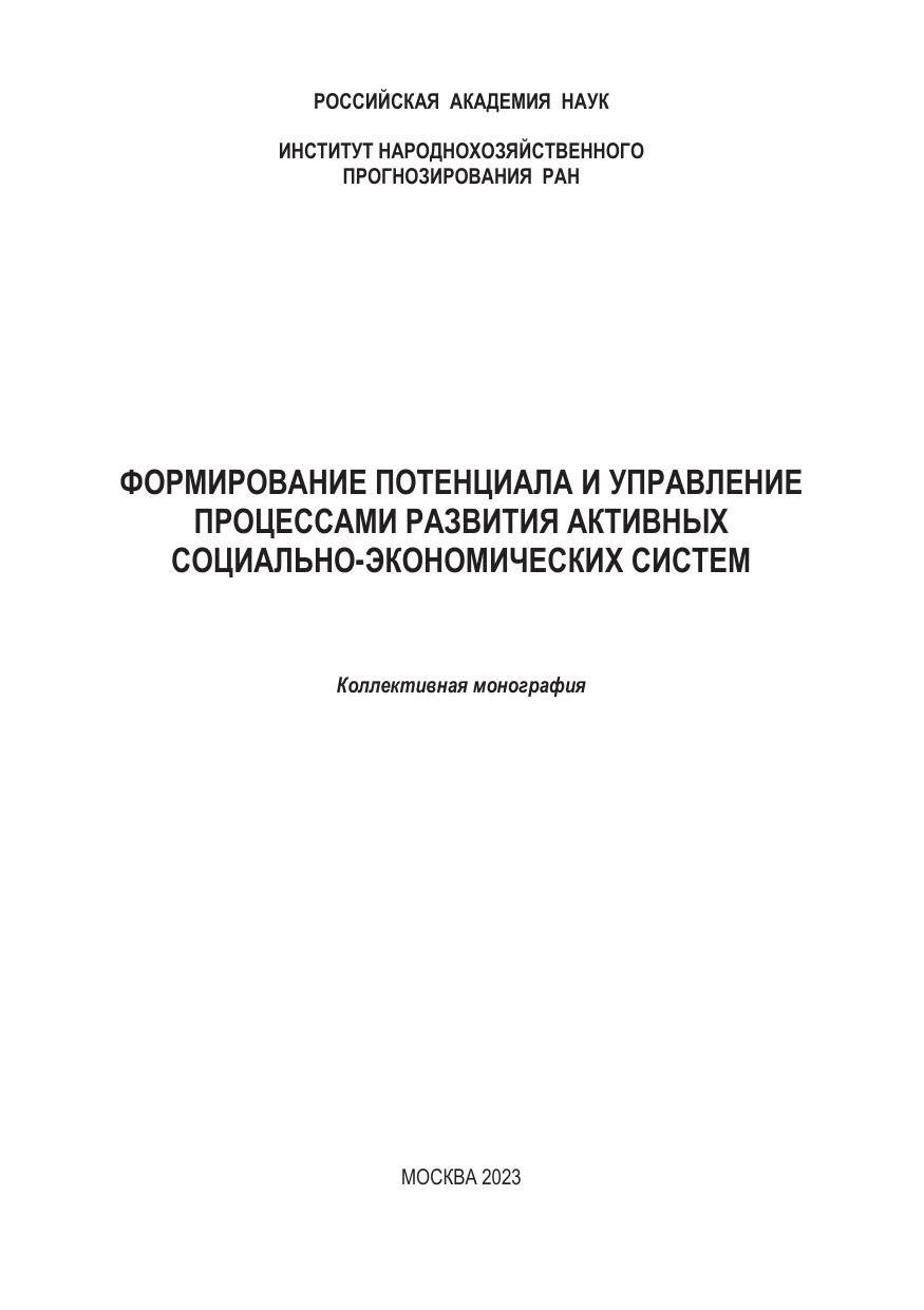 Формирование потенциала и управление процессами развития активных социально-экономических систем