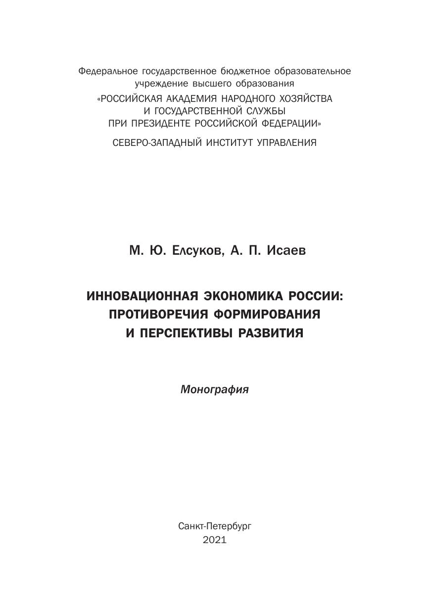 Инновационная экономика России: противоречия формирования и перспективы развития