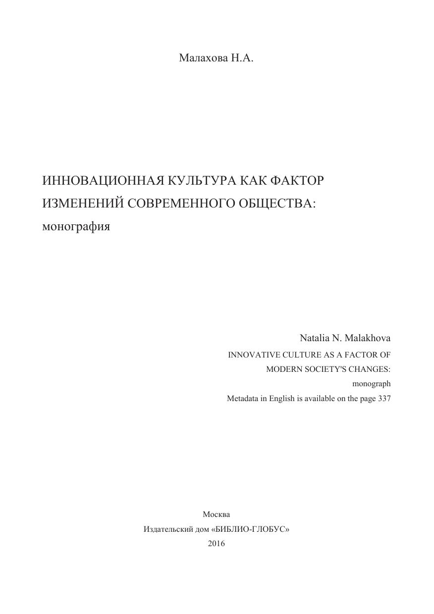 Инновационная культура как фактор изменений современного общества
