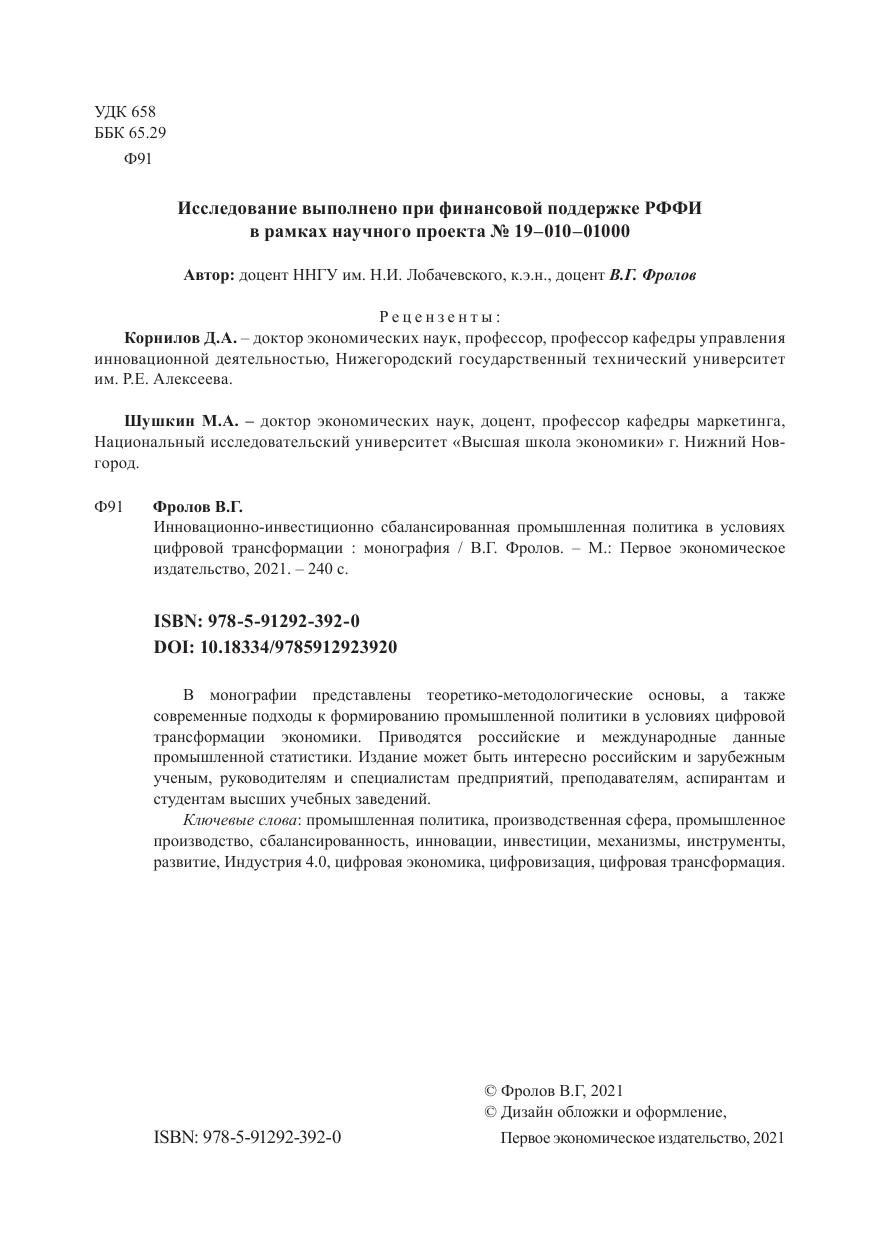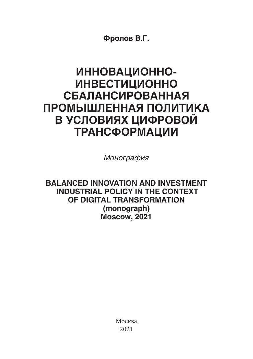 Инновационно-инвестиционно сбалансированная промышленная политика в условиях цифровой трансформации