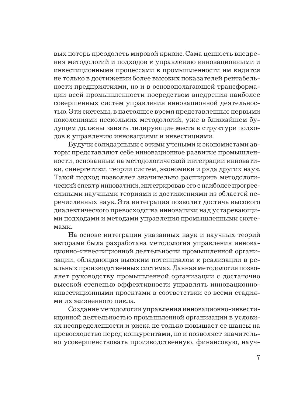 Книга посвящена разработке теории и методологии управления инновационно-инвестиционной деятельностью и инновационно-синергетическим развитием промышленных организаций на основе интеграции инновационных и инвестиционных процессов в условиях неопределенности и риска. В центре внимания теория и основы метод логической интеграции инноватики, синергетики, кибернетики, теории систем. На основе разработанного авторами подхода проведены синтез и формирование новой методологии управления инновационно-инвестиционной деятельностью, ее планирование, организация, контроллинг, анализ и регулирование в условиях неопределенности и риска. Показано развитие инновационно-синергетической парадигмы при росте инновационно-информационного потенциала человечества. Приводится метод оценки эффективности разработанной системы управления инновационно-инвестиционной деятельностью. Для научных работников, аспирантов, студентов, руководителей промышленных организаций, менеджеров, интересующихся синергетическими процессами и концепциями самоорганизации инновационно-инвестиционного развития организаций.