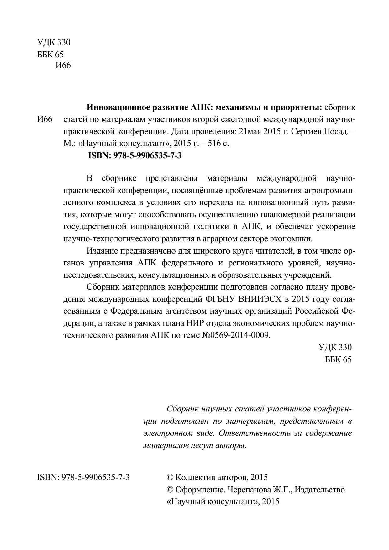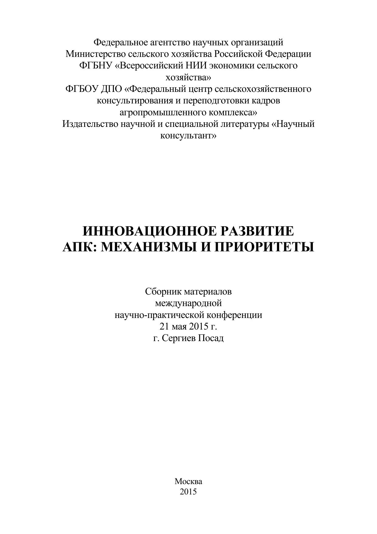 Инновационное развитие АПК: механизмы и приоритеты: сборник статей по материалам участников второй ежегодной международной научно-практической конференции