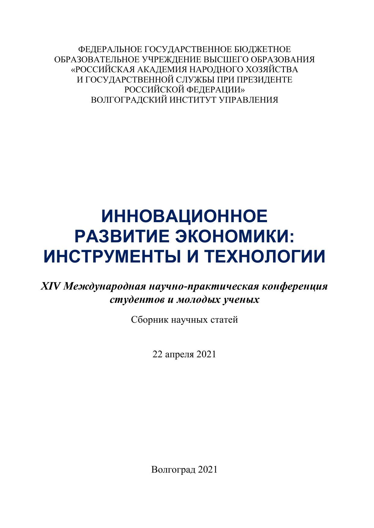 Инновационное развитие экономики: инструменты и технологии: XIV Международная научно-практическая конференция студентов и молодых ученых (2021; Волгоград)