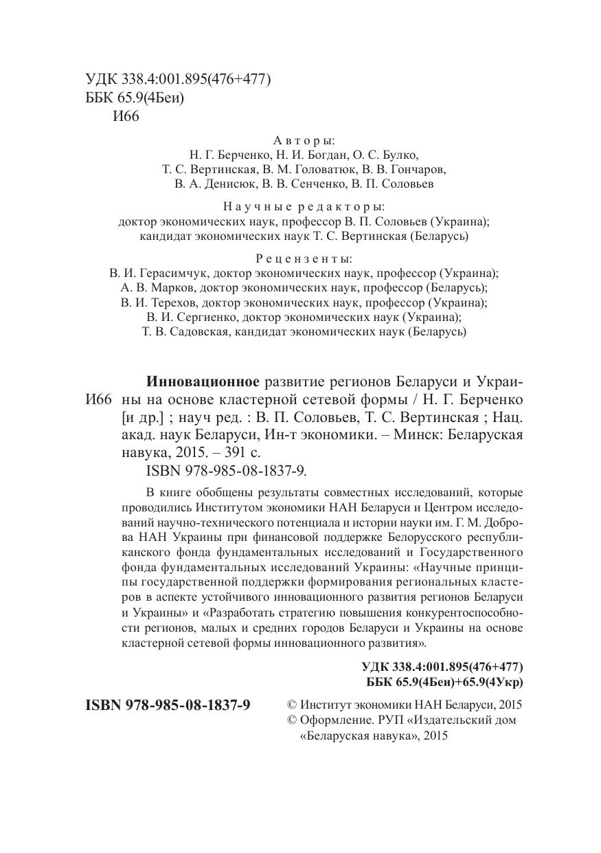 Инновационное развитие регионов Беларуси и Украины на основе кластерной сетевой формы