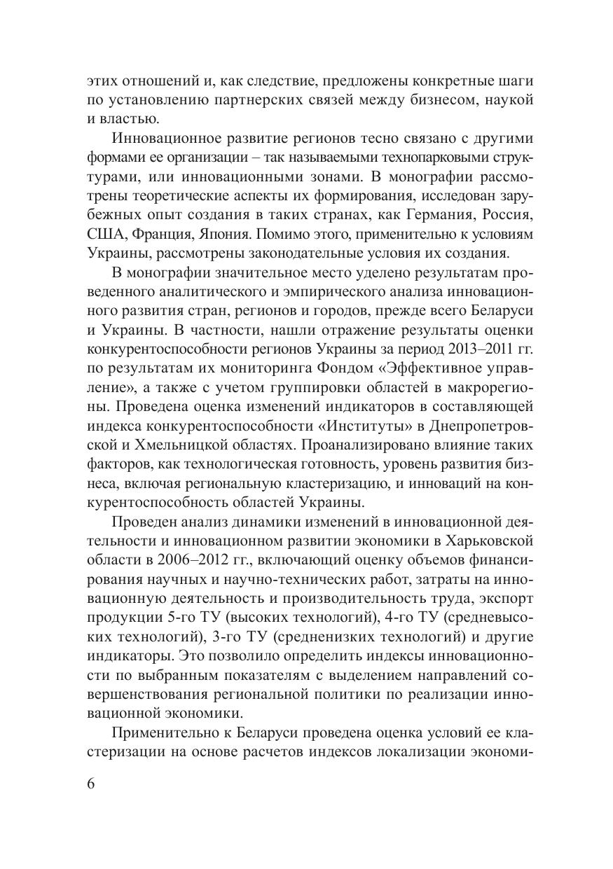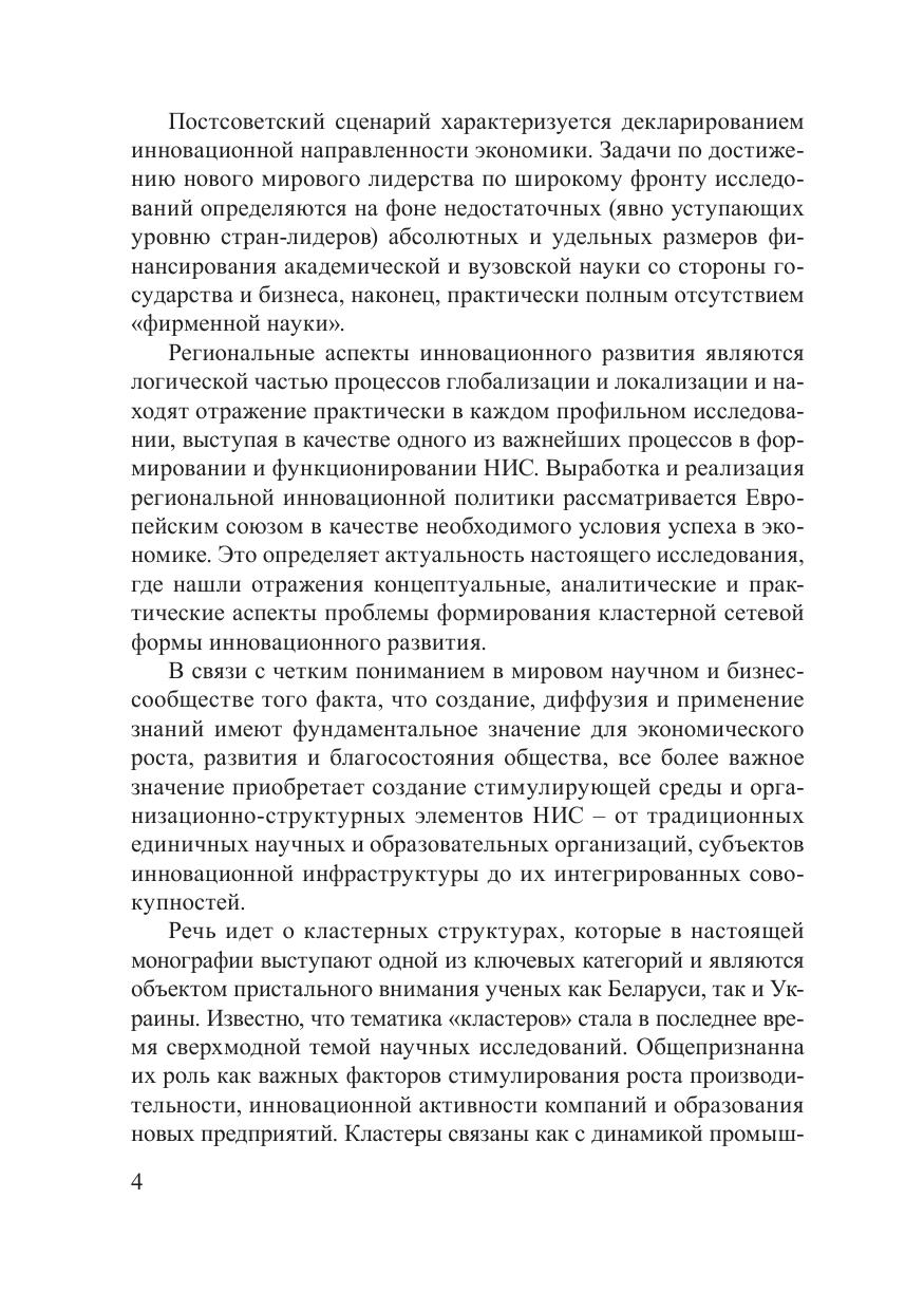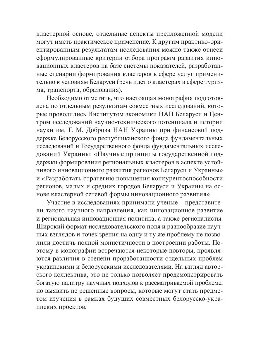 В книге обобщены результаты совместных исследований, которые проводились Институтом экономики НАН Беларуси и Центром исследований научно-технического потенциала и истории науки им. Г. М. Доброва НАН Украины при финансовой поддержке Белорусского республиканского фонда фундаментальных исследований и Государственного фонда фундаментальных исследований Украины: «Научные принципы государственной поддержки формирования региональных кластеров в аспекте устойчивого инновационного развития регионов Беларуси и Украины» и «Разработать стратегию повышения конкурентоспособности регионов, малых и средних городов Беларуси и Украины на основе кластерной сетевой формы инновационного развития».