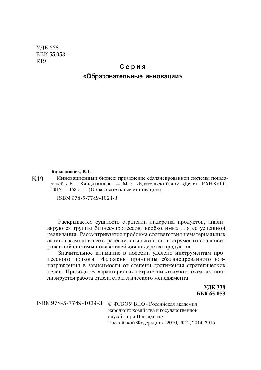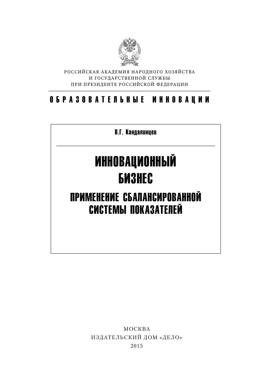 Инновационный бизнес. Применение сбалансированной системы показателей