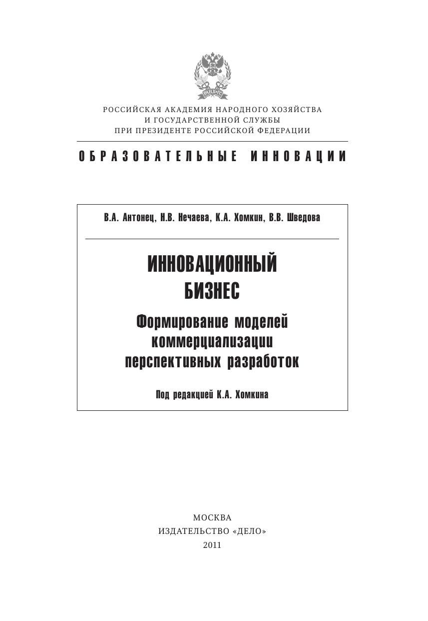 Инновационный бизнес: формирование моделей коммерциализации перспективных разработок
